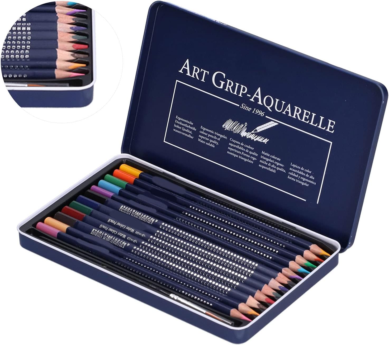 [Risparmio nel tempo] Le matite pre-travalate sono pronte per l'uso immediatamente, perfette per la scuola o a casa. [Strumenti di disegno di qualità] Matite ad acquerello premium progettate per disegnare dettagli e schizzi con pigmenti ricchi. [Comodo spazio di archiviazione] è disponibile in una robusta custodia da latta con un vassoio organizzato, mantenendo le forniture d'arte sicure e ordinate. [Applicazione liscia] La qualità della qualità dell'artista consente un'applicazione morbida e morbida in progetti artistici per bambini e adulti. [Design durevole] I nuclei spessi resistono alla rottura, garantendo un uso duraturo per tutte le tue esigenze .