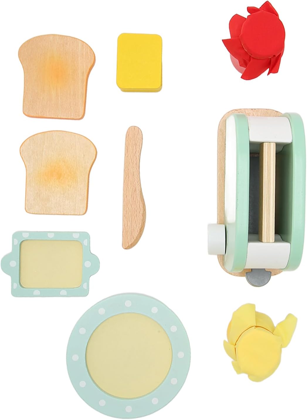 [Apprendimento pratico] Sviluppa l'immaginazione e la coordinazione occhio-mano con questo coinvolgente set di tostapane. [Gioco interattivo] Promuove il legame genitore-figlio attraverso divertenti attività di gioco in cucina. [Design sicuro] Costruito in legno massello con angoli arrotondati per un'esperienza di gioco . [Accessori coinvolgenti] Contiene numerose fette di pane e blocchi di legno per giochi di cucina coinvolgenti. [Ottima idea ] Ottimo per compleanni e vacanze, consente ai bambini di mostrare il loro talento culinario.