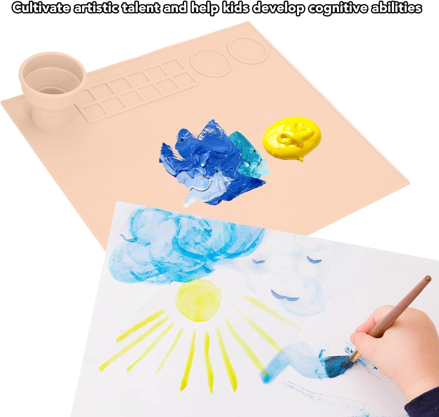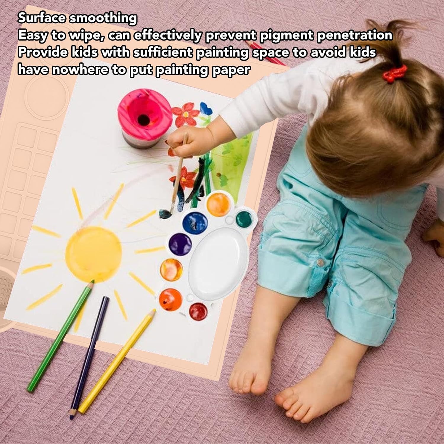 [Spazio sufficiente] Progettato di grandi dimensioni, questo tappetino offre molto spazio per disegnare e previene qualsiasi restrizione alla creatività e. [Creatività] Stimola l'immaginazione e i talenti artistici di tuo figlio con questo pratico strumento fai-da-te per promuovere lo sviluppo cognitivo. [Uso versatile] Dalla pittura allo scarabocchio, al collage e altro ancora, questo tappetino è ideale per l'educazione artistica e le attività di legame familiare. [Materiale premium] Realizzato in silicone, questo tappetino da pittura è affidabile e affidabile per garantire un'esperienza di disegno superiore al tuo bambino. [Facile da pulire] Facile da pulire, impedisce la penetrazione dei pigmenti e mantiene la pulizia del tappetino con il minimo sforzo.