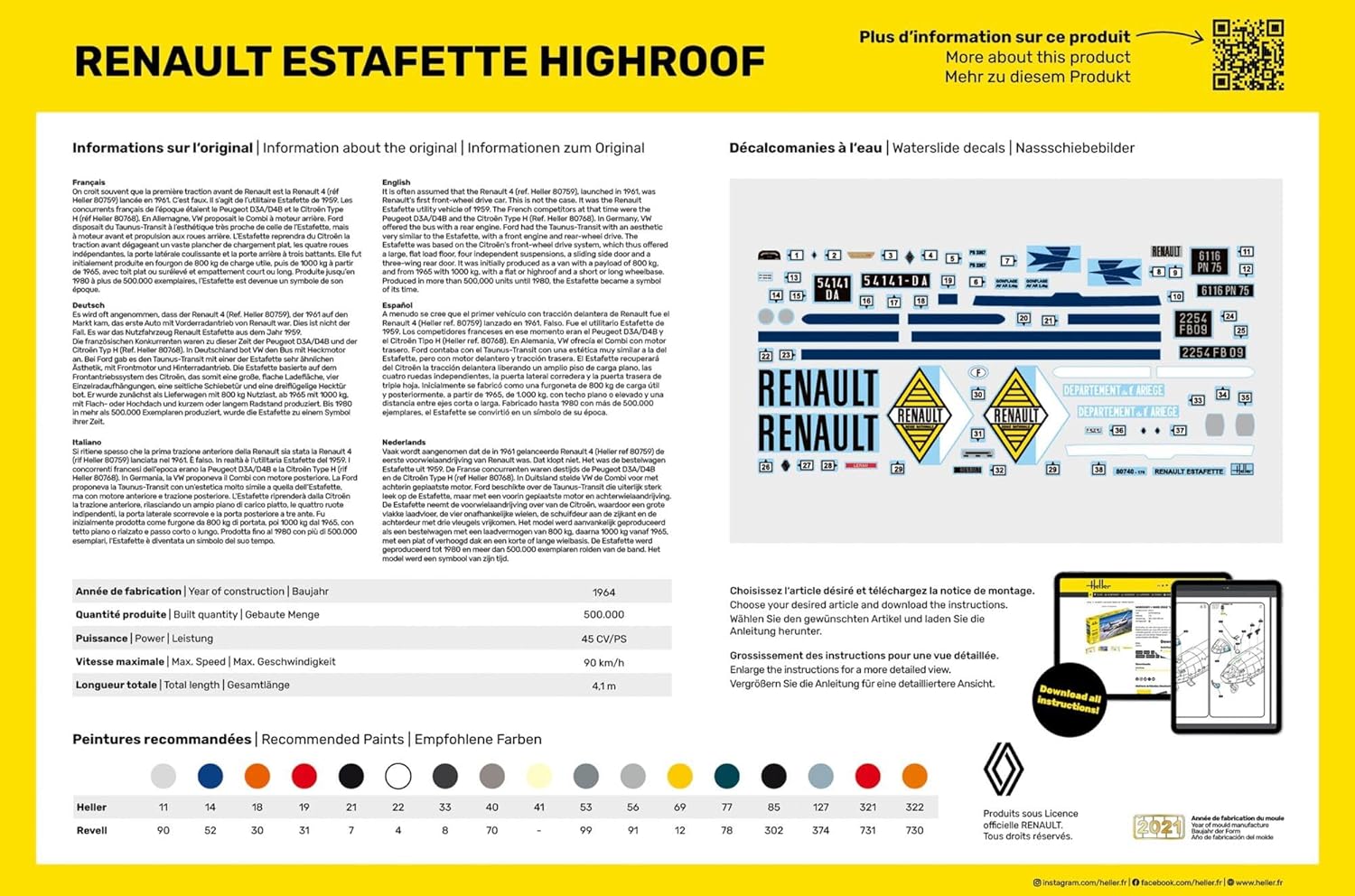 Heller 1:24 - Estafette Highroof Kit modello in scala dettagliata Per collezionisti dai 14 anni in su Non è un giocattolo