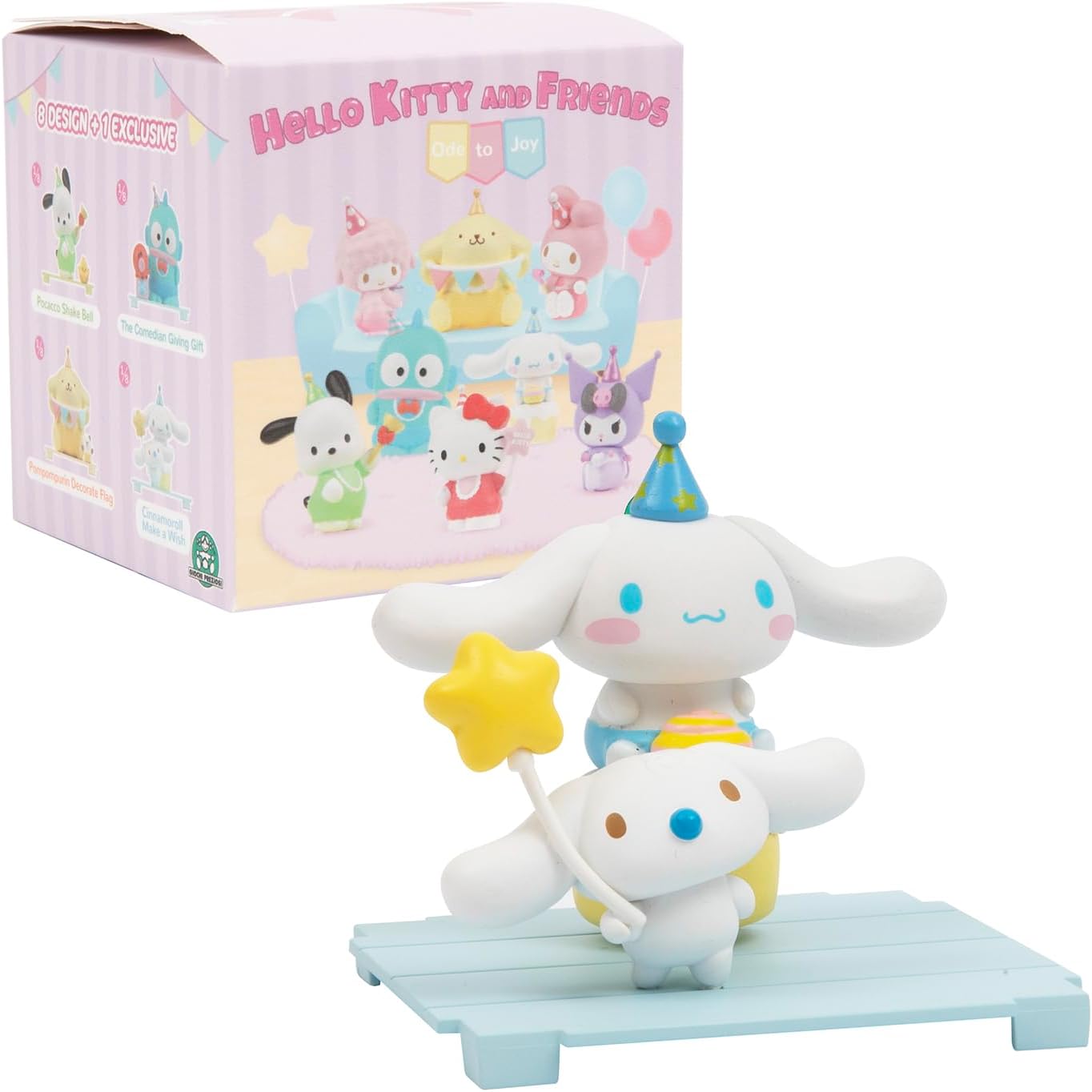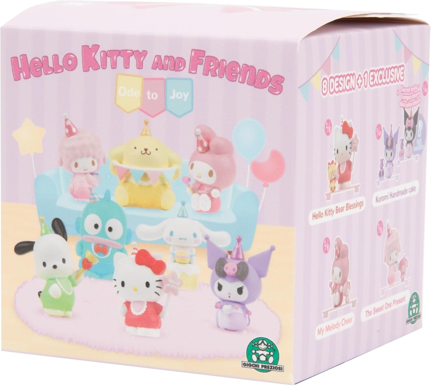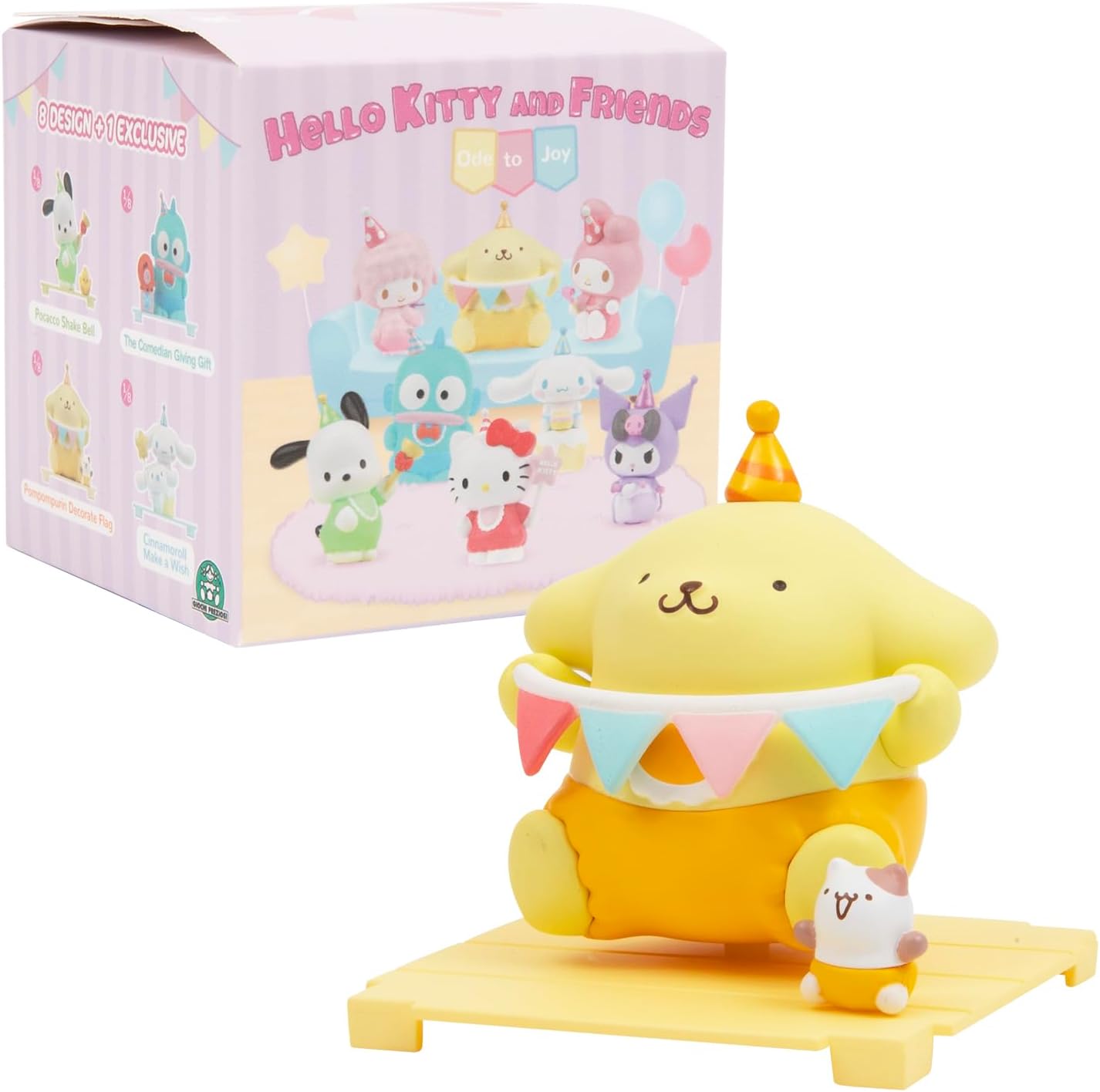 NUOVE FIGURINE COLLECTOR provenienti dall'universo carino e kawaii di Hello Kitty e dai suoi amici Collezione ODE TO TOY: 9 personaggi numerati dei tuoi personaggi preferiti con il loro doudou. Accessori inclusi. Collezionali tutti! Personaggi: Hello Kitty, My Melody, My Sweet Piano, Cinnamoroll, Pompompurin, Pochacco, Hangyodon, Kuromi rosa o viola. SORPRISA: Quale statuetta scoprirai? Modelli casuali. SCATOLA TRASPARENTE: Ogni statuetta viene fornita in una scatola trasparente, ideale per impilarla ed esporre facilmente l'intera collezione Dimensioni: altezza 6,5 cm, ideale per adattarsi perfettamente al resto della collezione Hello Kitty. Età: per bambini dai 3 anni e collezionisti di qualsiasi età