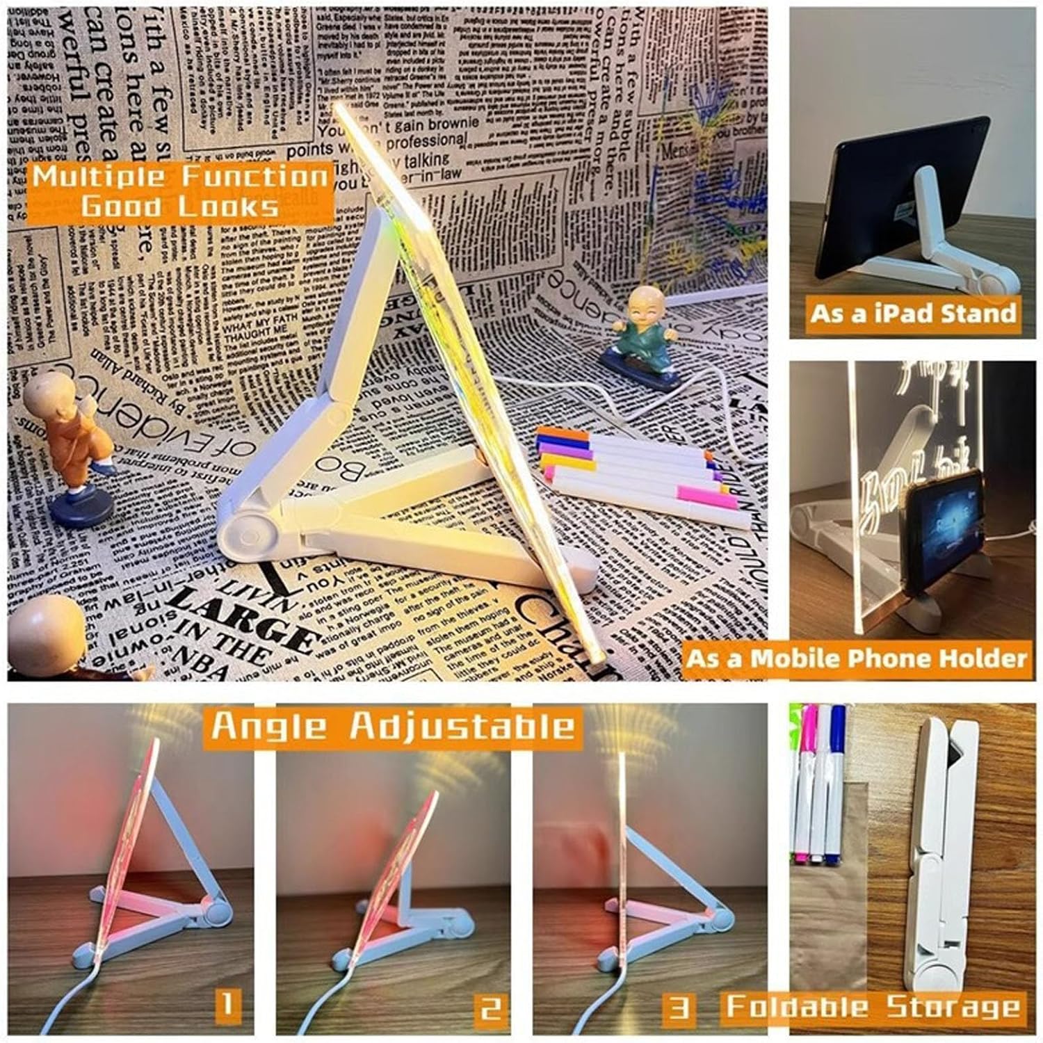Facile da usare: scheda con tecnologia LED, facile da scrivere/disegnare, design unico e facile da cancellare/cancellare, ideale per pubblicizzare i prodotti del tuo negozio con un effetto di luce al neon (la pellicola protettiva può questa piastra trasparente per asciugare il raschiamento prima dell'uso) Bacheca in acrilico luminoso: a differenza delle normali lavagne, consiglio di interesse delle persone, mantenendoli impegnati con ciò che è scritto sulla lavagna. Possono essere come tavole da scarabocchio, schede di pianificazione o anche promemoria luminosi. Perfetto per lasciare messaggi dolci ai tuoi bambini o ai tuoi cari. Consente di scrivere messaggi, disegnare e molto altro ancora Supporto regolabile unico: il tavolo da disegno è dotato di un treppiede ad angolo regolabile, che può regolare la larghezza e l'inclinazione della lavagna in base alle proprie preferenze, rendendo facile visualizzare le informazioni Molteplici usi: ideale per ristoranti, bar, hotel, negozi al dettaglio, centri commerciali, bar, discoteche, supermercati, eventi, appunti, ecc