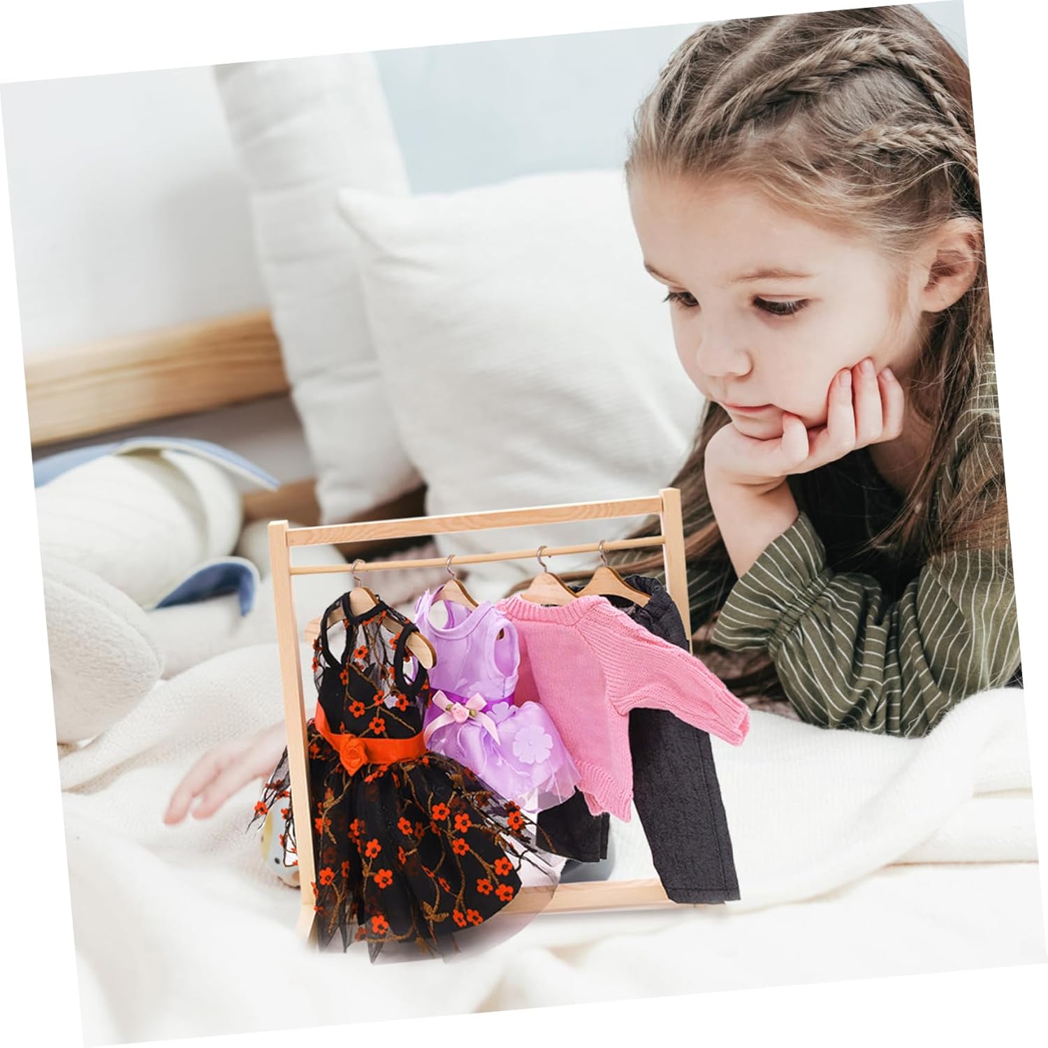 Portaoggetti per bambole: un accessorio indispensabile per la stanza delle bambole, per aiutare i a organizzare loro bambole, portaoggetti a doppio Appendiabiti a due strati: adatto per la creazione bambole, negozi bambole, camerette per e altre , appendiabiti a doppio Mini appendiabiti per bambole: puoi migliorare la capacità dei tuoi mantenere la stanza in ordine e pulita utilizzando gli appendiabiti per bambole e gli scaffali per da Decorazioni per la scrivania: accessori per la stanza delle bambole, un buon per aiutare a organizzare i vestiti delle sue bambole, un portaoggetti Appendiabiti per bambole: materiale in legno rende questi appendini per bambole utilizzabili a lungo, simulando un appendiabiti