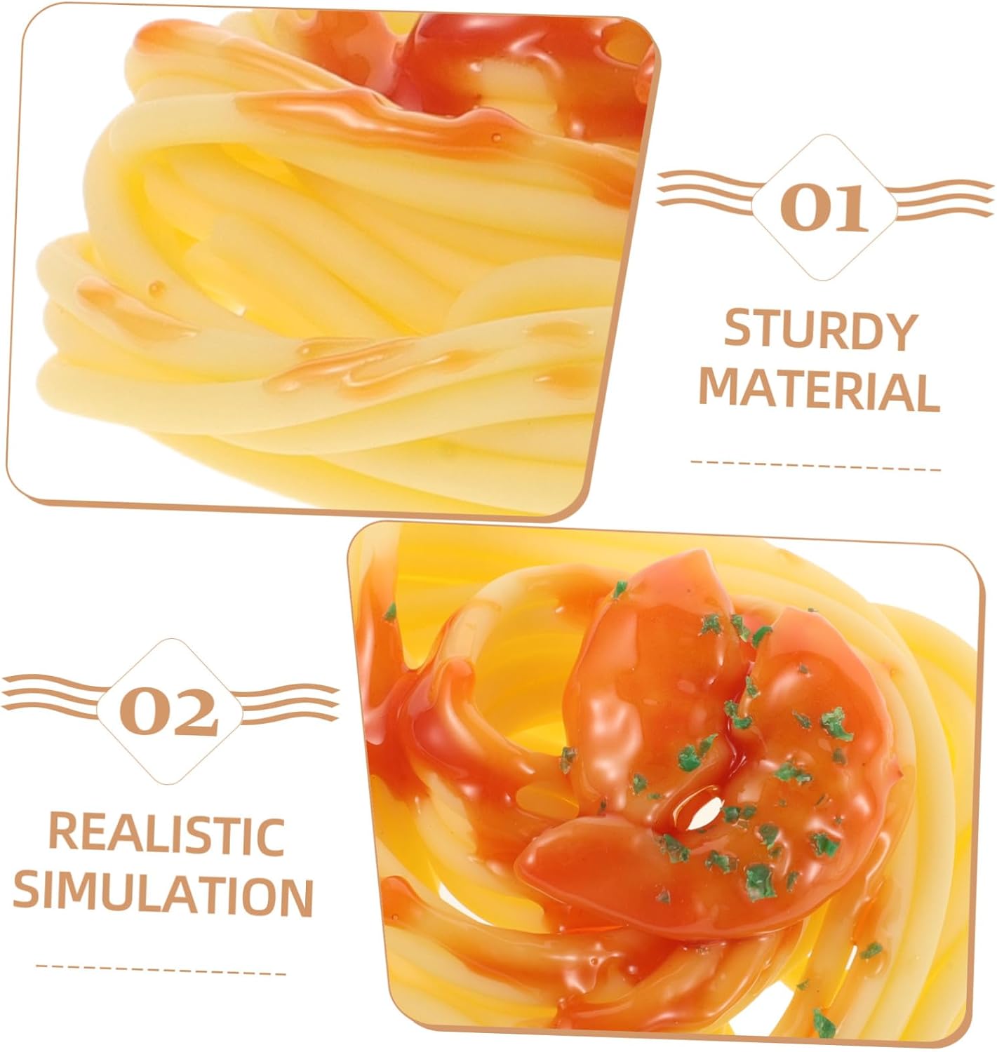 Alta simulazione: alta simulazione dell'aspetto e delle dimensioni della superficie liscia, non fa male alla mano, eccellente e realistico, di cibo simulato, cibo realistico Aspetto realistico: spaghetti artificiali realistici dall'aspetto reale e invitante, ottimi per la decorazione, non possono essere mangiati, oggetto di scena per il cibo, simulazione del cibo Versatile: accessorio per spettacoli, costumi, scenografie, fotografia, oggetti di scena, ecc., decorazioni, spaghetti simulati Realistico: forme realistiche, texture chiare, arte delicata, lo stesso aspetto della cucina di spaghetti in pasta, cibo di pasta giocattolo, oggetti di scena di spaghetti in pasta di carne simulata Dettagli raffinati: l'eccellente lavorazione del nostro di pasta spaghetti ti porterà, cibo simulato realistico, cibo simulato