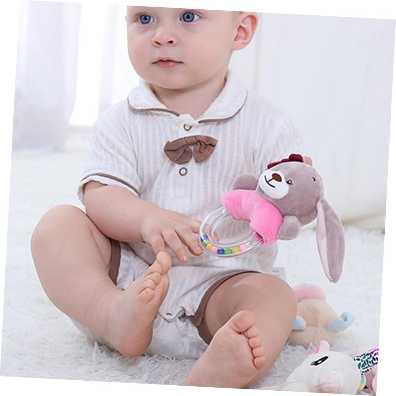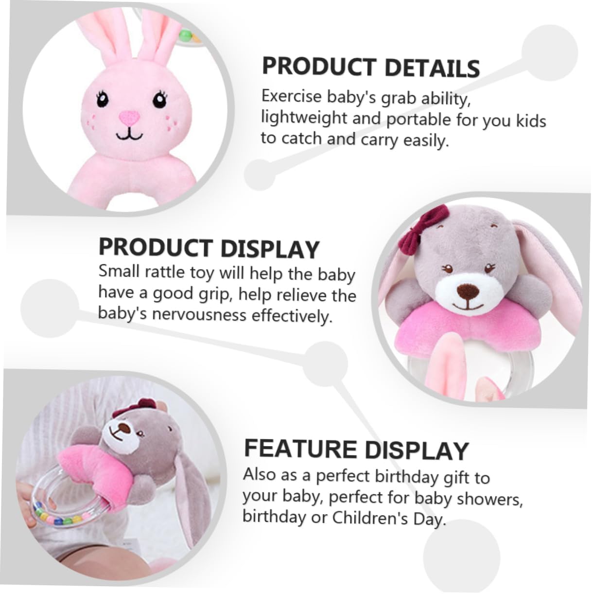 Sonaglio ad anello in peluche per bambini: esercita la capacità di presa del bambino, leggero e portatile per far suonare facilmente il sonaglio dei tuoi bambini. Anello sonaglio da mano - anche come di compleanno per il tuo bambino, per baby shower, compleanni o festa dei bambini, anello sonaglio da mano per bambini Sonaglio a forma di cartone animato: il sonaglio per bambini è adatto per l'uso all'aperto che chiuso, come in casa, nella cameretta dei bambini, nel passeggino e nella culla. a forma di animale di peluche: il dei cartoni animati è vivido e adorabile, puoi scuoterlo a destra e a , diverte molto il bambino, per l'uso da dei bambini, a forma di animale per neonati a forma di bambola per bambini: il piccolo aiuta il bambino ad afferrare il e ad alleviare efficacemente il nervosismo del bambino.