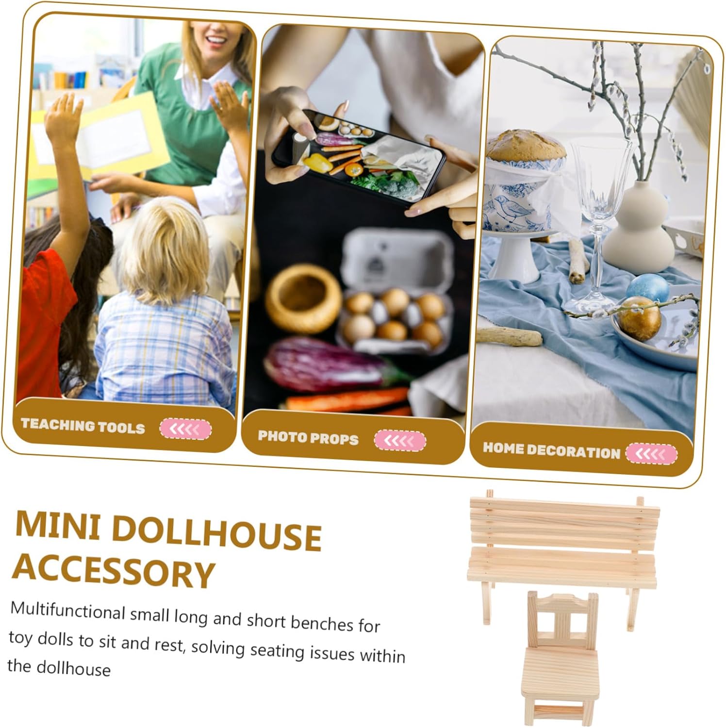 Decorazione versatile: non solo per case delle , questi affascinanti pezzi possono anche decorare scrivanie e armadi, portando un'atmosfera accogliente in qualsiasi spazio, decorazione mini sedie, modello panca in miniatura Usi multipli: adatto a varie scene case delle , inclusi soggiorni, camere da letto e cucine, migliorando l'esperienza complessiva, sedia da panca in miniatura, modello mobili in miniatura Pratiche: adatte per far sedere e rilassarsi giocattolo, queste risolvono il problema dei posti a sedere nella tua casa delle , decorazione sedie in miniatura, accessori per la casa delle Costruzione robusta: realizzati in legno, questi accessori garantiscono durata e sicurezza per infinite ore gioco, modello mini sedia, panca in miniatura in legno Posizionamento versatile: adatto a diverse scene case delle come soggiorni, camere da letto e cucine, rendendo il gioco più realistico, del parco in miniatura, gadget per case delle