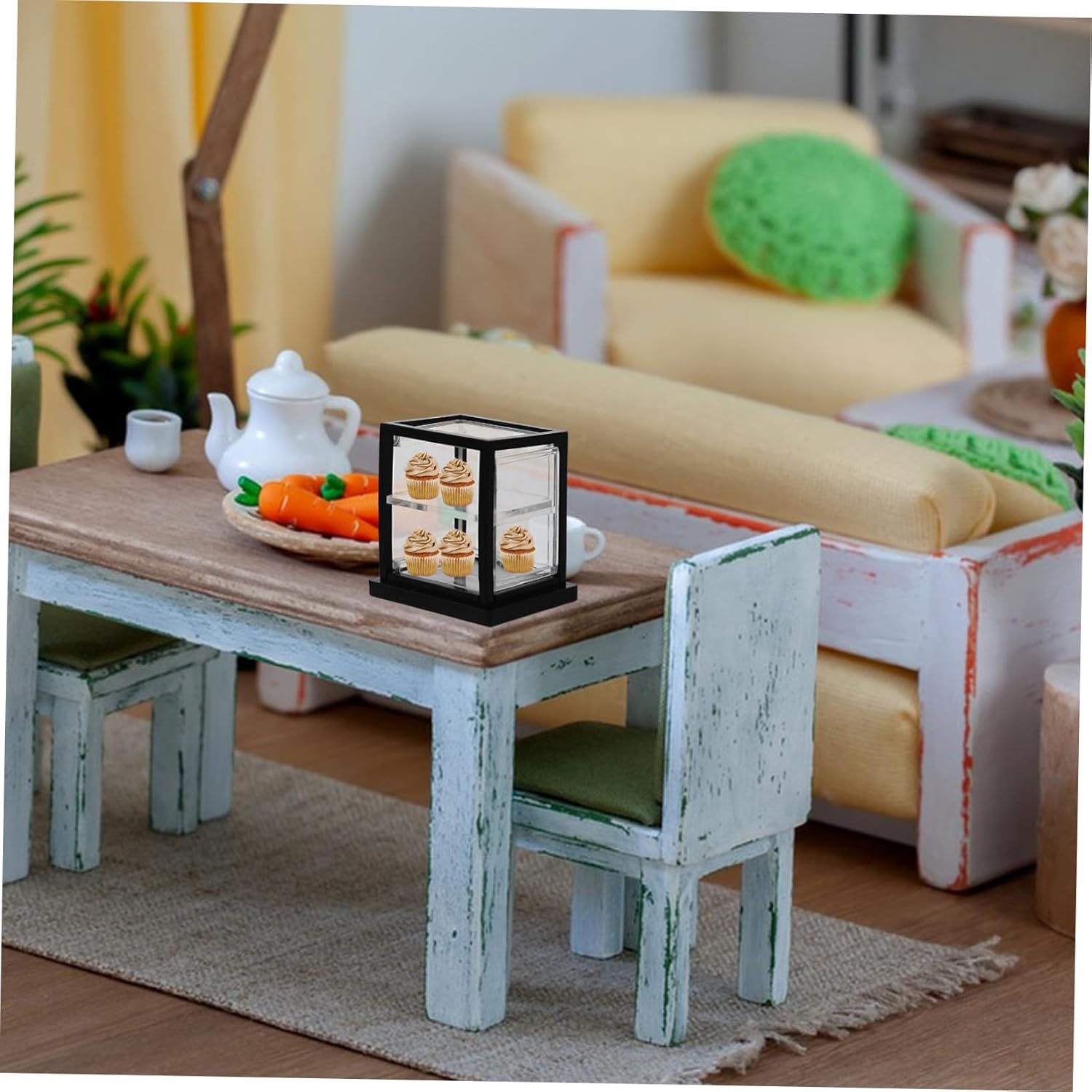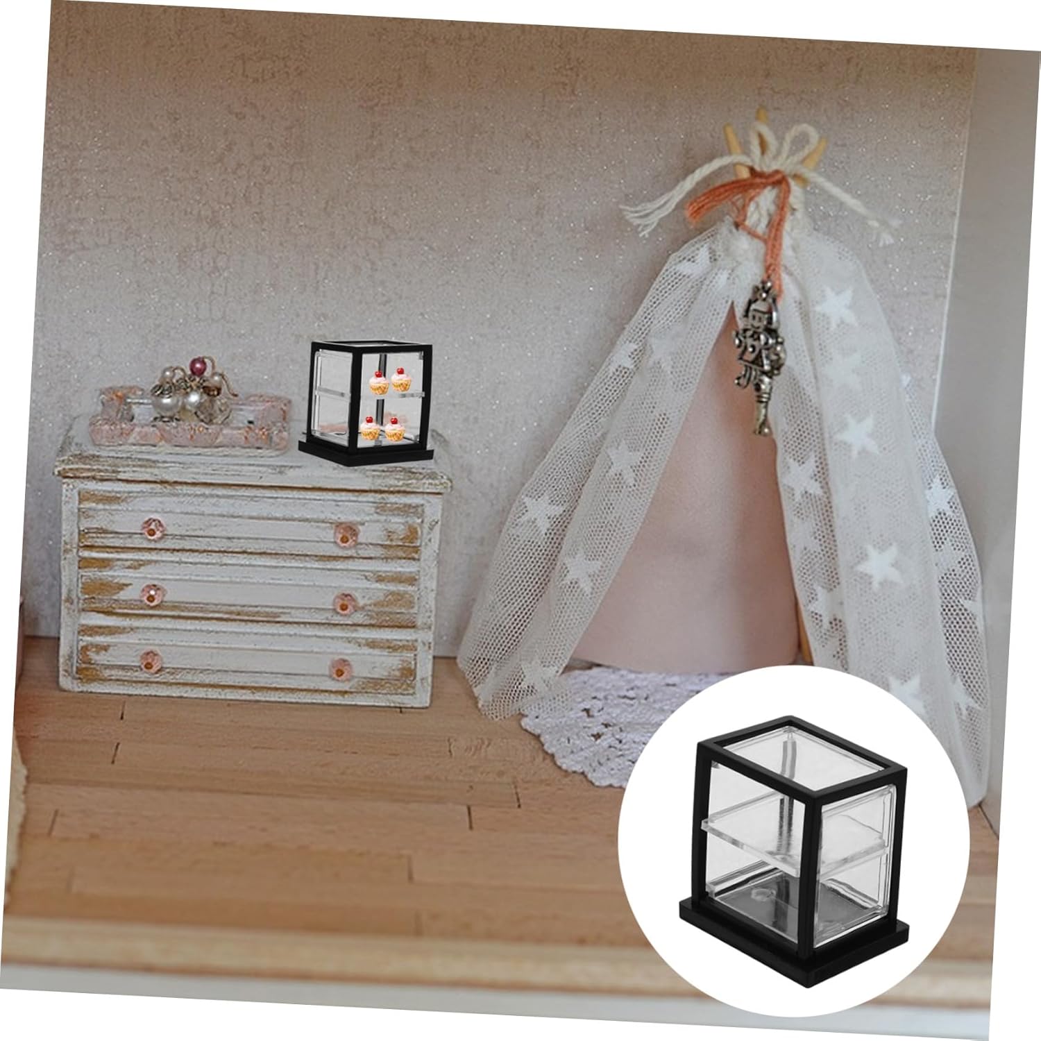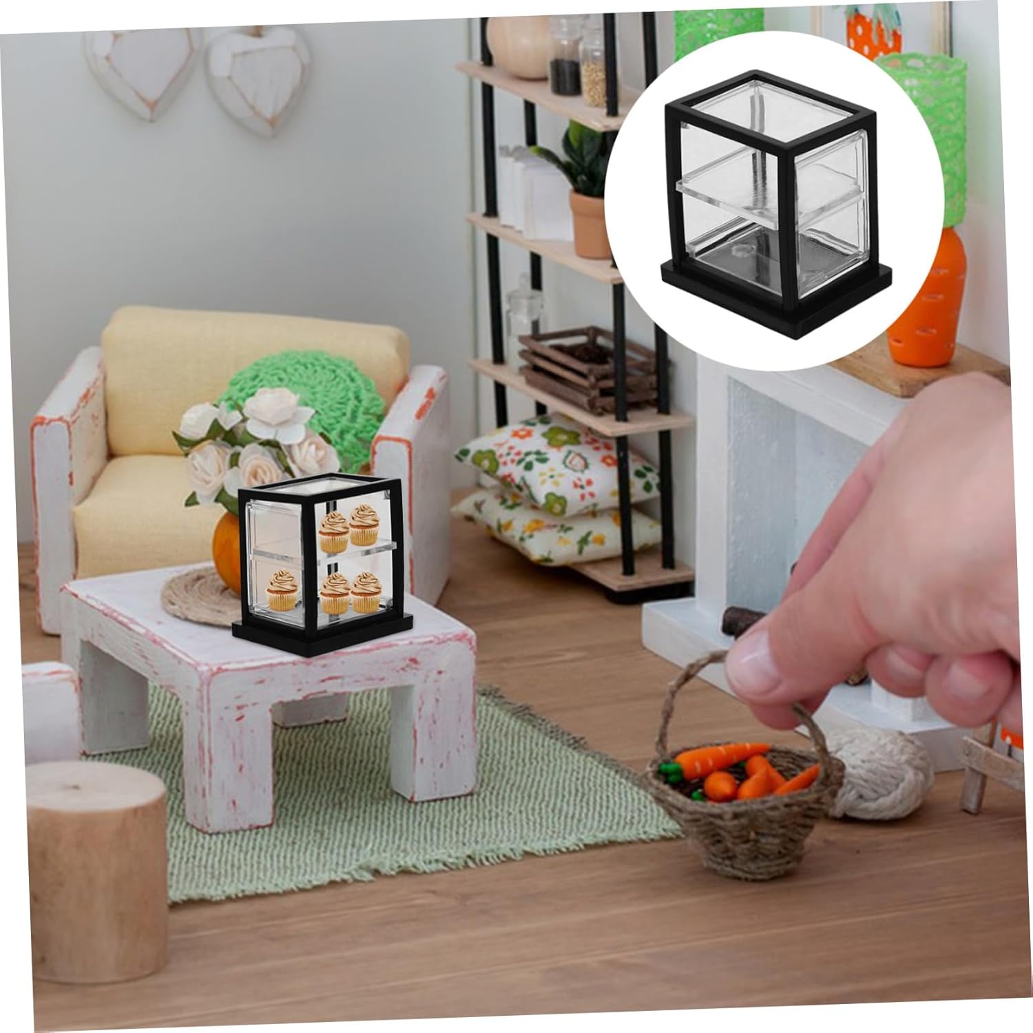 Vetrina per cupcake: può essere utilizzata come oggetto fotografico per scattare delle foto, mini armadietto decorativo e bello Mini : compatta e adorabile, puoi metterci dentro qualche torta in miniatura, dessert (non incluso) e altro per decorare, mobiletto da in miniatura Espositori per torte in miniatura: le dimensioni ridotte sono creative e decorative, adatte per essere esposte nella cucina della casa delle bambole, decorazioni per la casa delle bambole Mobiletto in miniatura: puoi usare mini mobiletto per torte per aggiungere più alla mini casa, rendendola più raffinata e , mini mobiletto per dolci da esposizione Mini vetrina per dolci: vetrina per dolci si adatta alla maggior parte degli stili di casa delle bambole, da quella a quella tradizionale, rendendola un versatile d'arredo, vetrina per in miniatura