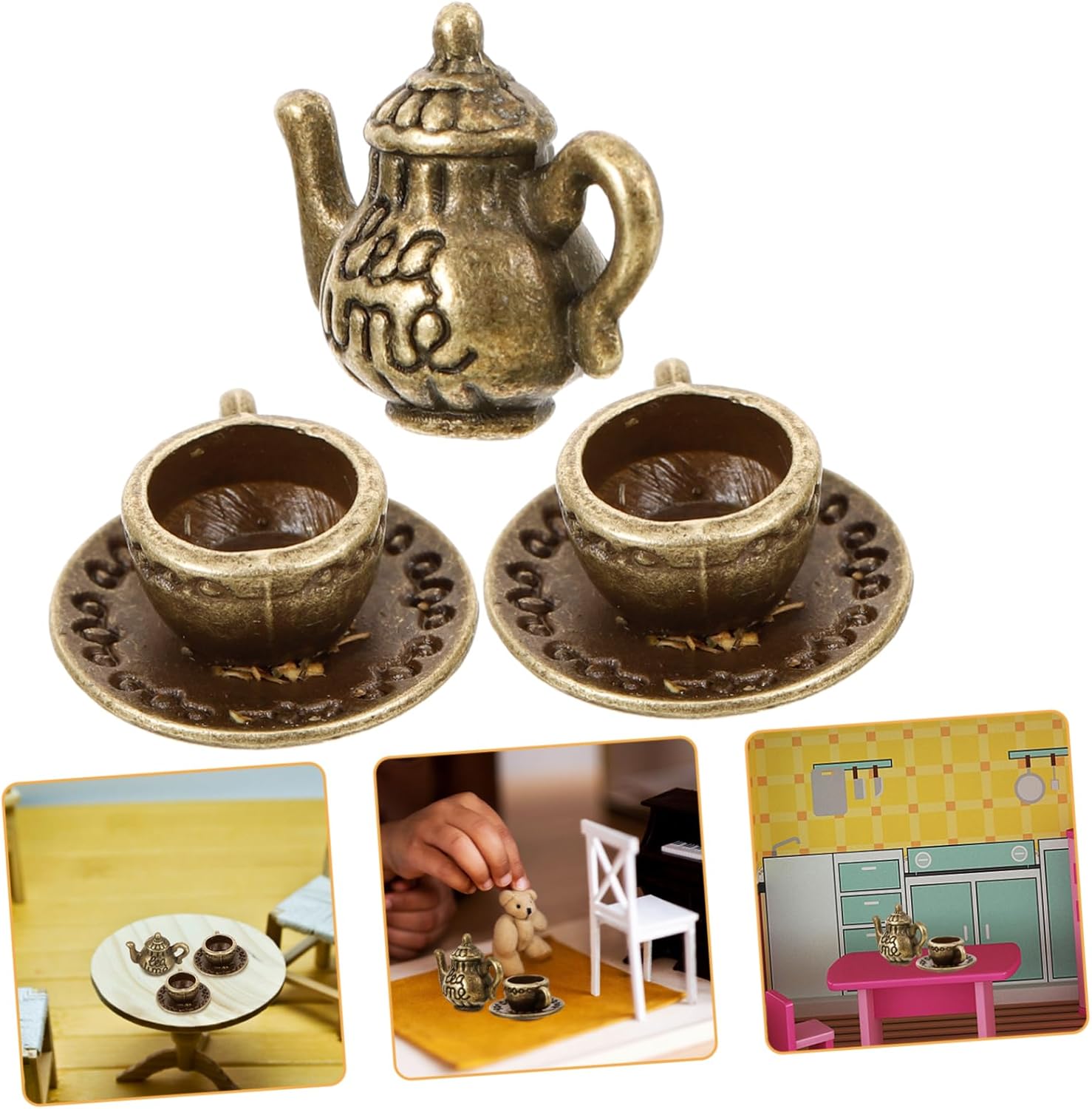 Piccole tazze da tè: il set da tè in miniatura può essere utilizzato anche per decorare la casa delle bambole, la mini casa, ottimo effetto decorativo, piccola teiera di metallo Piccola teiera in metallo: l'aspetto semplice e delicato e la consistenza squisita renderanno il set di teiere in miniatura più decorativo, mini tazze da tè Mini teiera in metallo: dimensioni ridotte, lavorazione delicata, semplice da usare, la mini teiera e la tazza da tè sono delicate e decorative per micro scene, teiera in metallo in miniatura Mini teiera - adatta per decorazioni di mini case, progetti fai da te, modelli da esposizione, oggetti di scena per foto, applicazioni divertenti e interessanti, piccola teiera Mini teiera per casa delle bambole: questo set di mini teiere ha una lavorazione raffinata e una superficie liscia, puoi usarlo in tutta tranquillità, piccola teiera per casa delle bambole