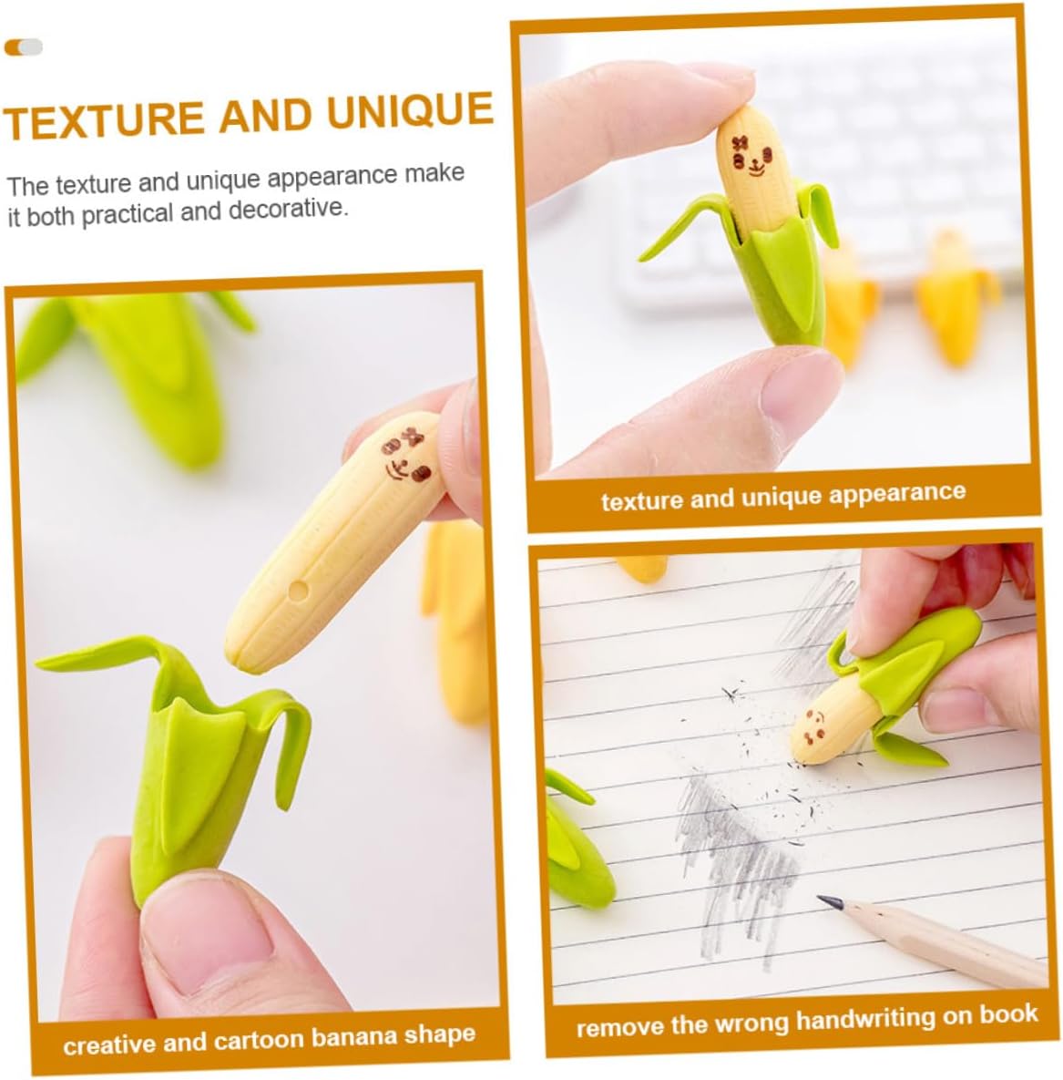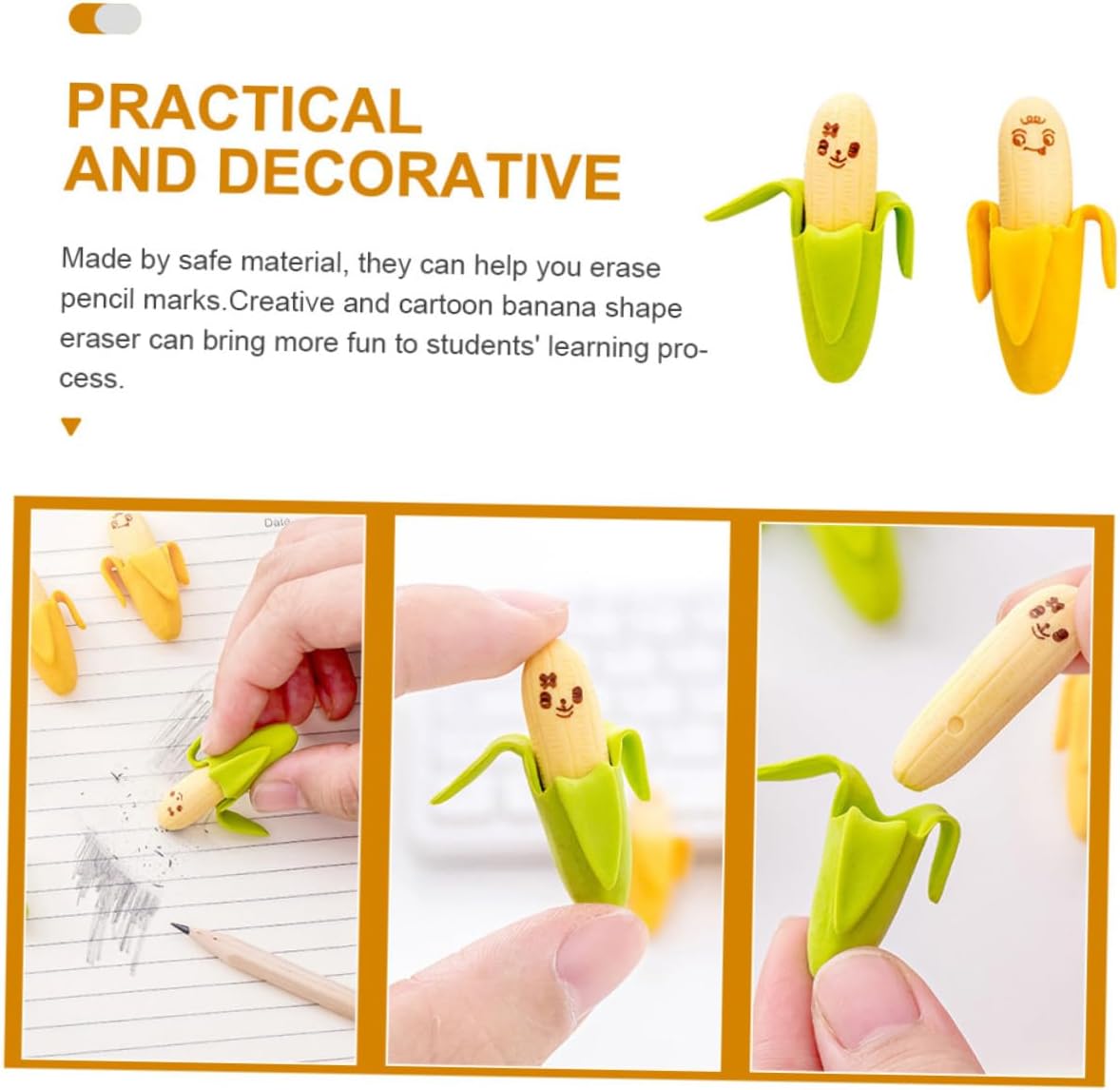 Gomme per : questo prodotto svolge efficacemente la funzione di una gomma e può cancellare la scrittura a mano che hai scritto con una , gomma a forma di banana Gomme sfuse: hanno una funzione pratica, possono rimuovere bene la scrittura sbagliata sui libri, accessori di cancelleria creativi e pratici, carini Gomme per la scuola: design a forma di banana da cartone animato, adorabili e piccole, facili da usare, possono regalare una bella esperienza, gomme per la scuola a forma di banana sfuse Gomme per matite a forma di banana: cancellano facilmente i segni della e sono sicure da usare come giochi e giocattoli creativi e pratici, mini gomme a forma di banana Gomma a banana: realizzata in materiale che consente di cancellare facilmente i segni di , gomme fantastiche