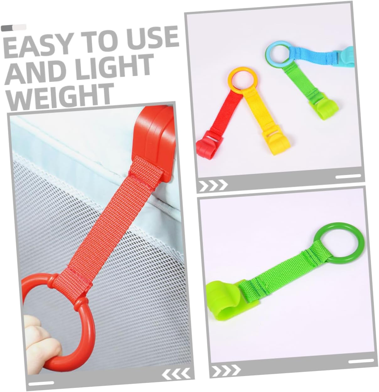 Anelli di sostegno per neonati: i giocattoli per camminare per neonati sono di piccole dimensioni, leggeri e facili da trasportare, uno strumento molto pratico per l'addestramento camminare dei neonati, il girello per neonati Anelli di trazione manuali: realizzati utilizzando plastica e tessuto, garantiscono la sicurezza di questo anello per culla e consentono di utilizzarlo con sicurezza, anelli di trazione per neonati Anelli di supporto per lettino per bambini: aiutano il bambino a sviluppare il movimento e ad esercitare la propria autostima; il bambino può anche utilizzare l'anello per rimanere in piedi e non cadere facilmente, anelli di supporto per culla Anello di trazione per neonati: questi anelli di trazione possono aiutare il tuo bambino ad acquisire sicurezza nello stare in piedi e nel camminare, offrendoti un aiuto, anelli di trazione per box Anelli da gioco: aggancia questi anelli da tirare recinto del bambino, quindi incoraggialo ad alzarsi con l'aiuto di questi anelli, anello da tirare a mano