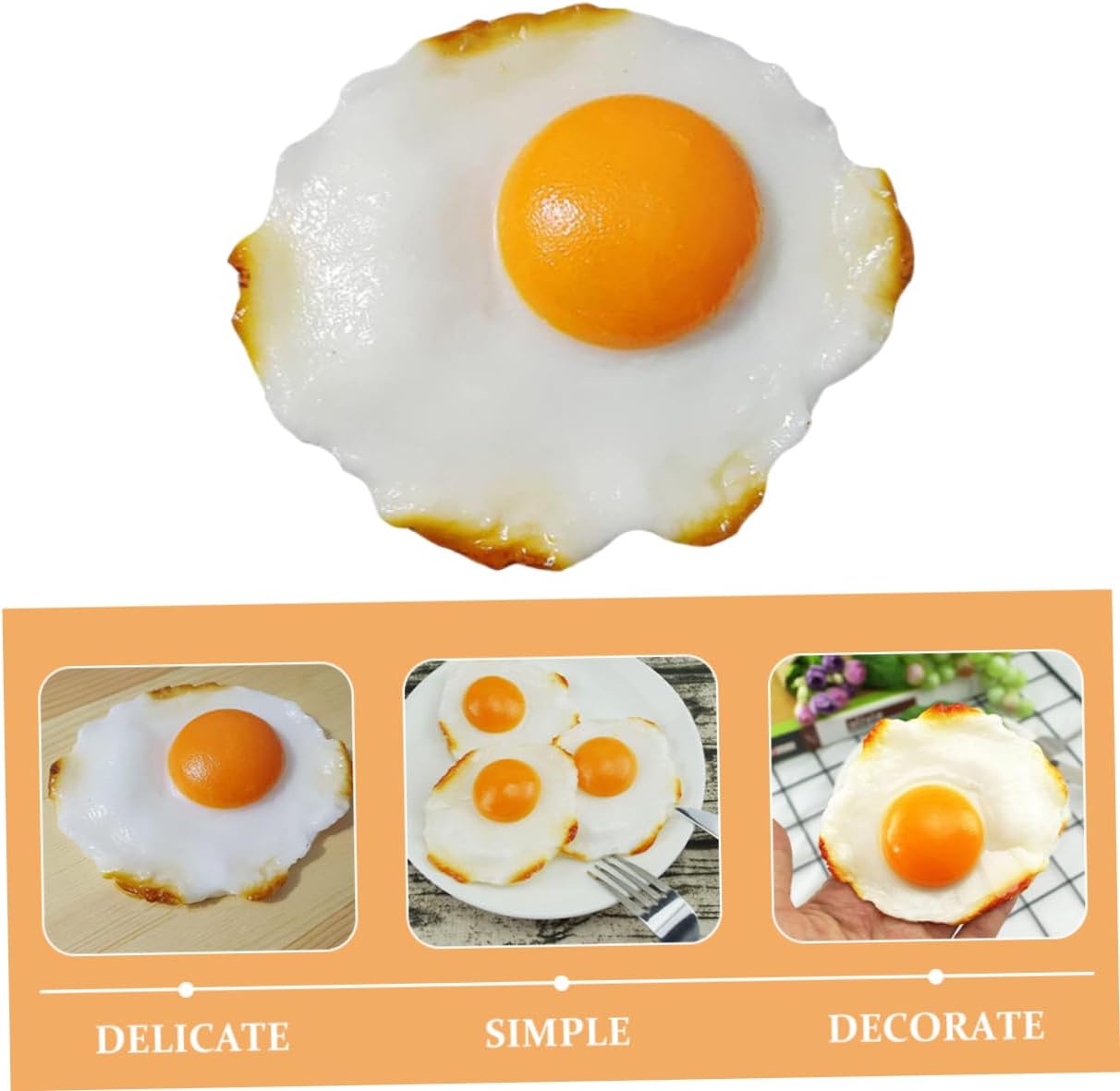 Decorazione elegante: usalo come oggetto di scena per migliorare l'aspetto estetico della tua cucina o del tuo ristorante, di cibo, di esposizione di uova fritte Realistico e dettagliato: questo di fritto è meticolosamente realizzato per assomigliare a qualcosa, un finto fritto, un giocattolo di fritto di cibo finto: regala alla famiglia e agli amici una decorazione realistica del di fritto simulato, può essere molto divertente e pratico, fritto artificiale Giocattolo multifunzionale: non solo un oggetto di scena, può anche essere utilizzato come giocattolo per un maggiore divertimento e interazione, cibo finto per l'arredamento della cucina, di fritto finto Giocattolo a forma di fritto: il è molto divertente e realistico, ti metterà di buon umore e decorerà la tua casa, cibo simulato
