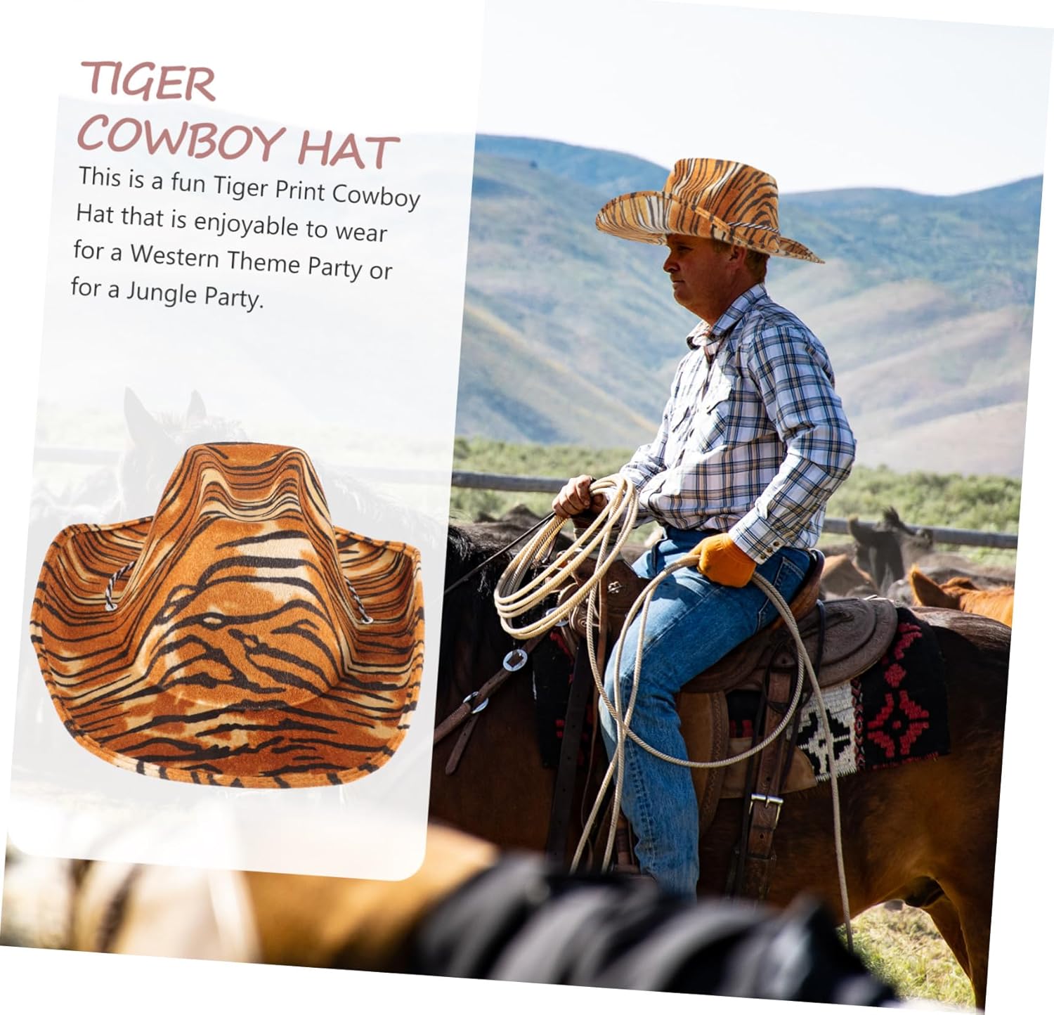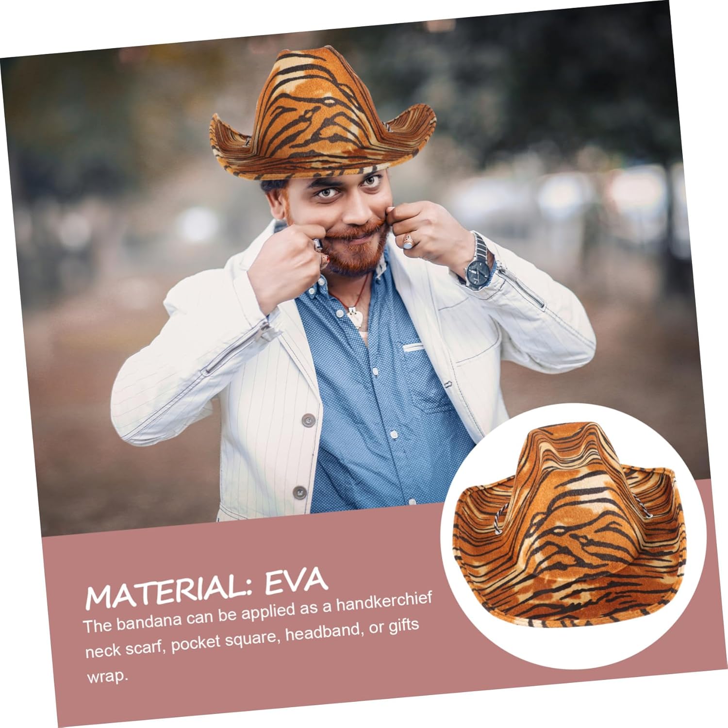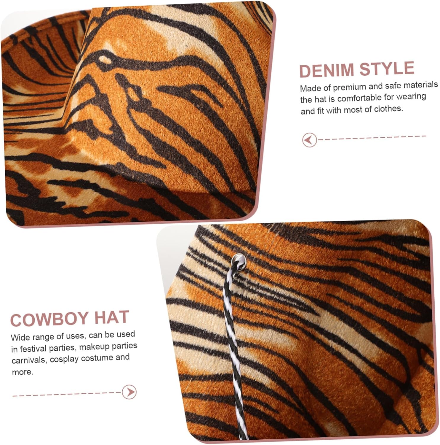 Descrizione prodotto dei pacchetti 1 Cappello stampato Caratteristiche -Colore: Cappello con stampa più stretta in colori assortiti. -Dimensioni: 35,00X31,00X15,00 cm/13,76X12,18X5,89 pollici cappello da cowboy -Informazioni sul prodotto:Cappello da cowboy con motivo -Materiale: cappelli da in Eva per adulti - Adatto per cosplay, feste di Halloween, eventi in maschera o a tema, cappelli da per festival. - Con il suo splendido ed elegante motivo a , questo cappello conquisterà facilmente i della maggior parte delle ragazze e delle donne che amano i cappelli con stampa animalier. - Si abbina bene ai tuoi outfit di stili diversi, aiuta a mettere in mostra il tuo fascino da cappello da cowboy da festa. - Ottima fattura, massima attenzione a ogni dettaglio per conferire al cappello da sole con stampa di un aspetto sorprendente. Aggiungi un tocco country a qualsiasi outfit con il nostro cappello e a indossare il tuo cappello da cowboy con strisce di in stile western. Informazioni sulle merci cappello animale Cappello delicato, attraente, elegante e alla moda, evidenzia il tuo aspetto, cattura facilmente l'attenzione delle persone. Stampa Ottimo per matrimoni, feste di cosplay, Halloween, feste in maschera, feste a tema western e altre occasioni in cui vuoi essere più bella Avviso di sicurezza 1
