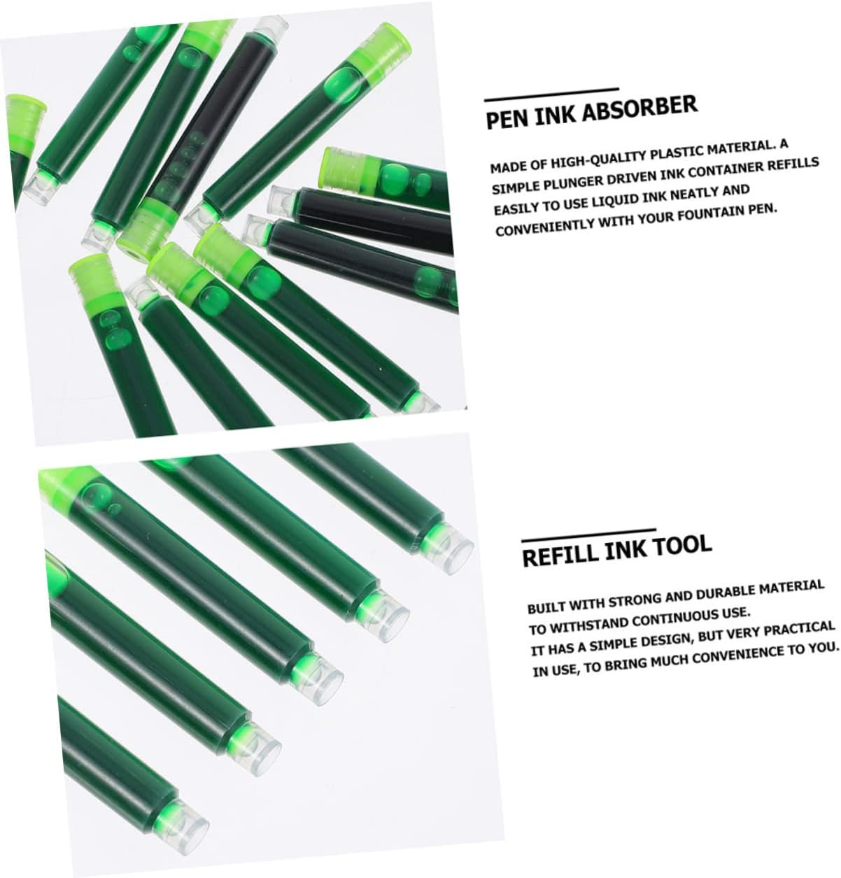 Ricarica per penna a inchiostro: utilizzando PP di alta qualità, è molto pratico e il colore non è facile da staccare, puoi usarlo facilmente, ricarica di colore Inchiostro per penna per calligrafia: condividilo con la tua famiglia, perché è pratico e può fornirti esperienza, per la penna stilografica in ufficio Inchiostro per penna: realizzato in materiale PP pratico e di alta qualità, che è molto sicuro e contiene penne Ricarica per penna a inchiostro: non si deforma facilmente, è pratica e puoi usarla. Realizzato in materiale resistente per resistere all'uso continuo, ricariche per penne colorate Ricariche di inchiostro per penna: leggere e facili da trasportare, design del prodotto semplice e generoso, ricariche di inchiostro
