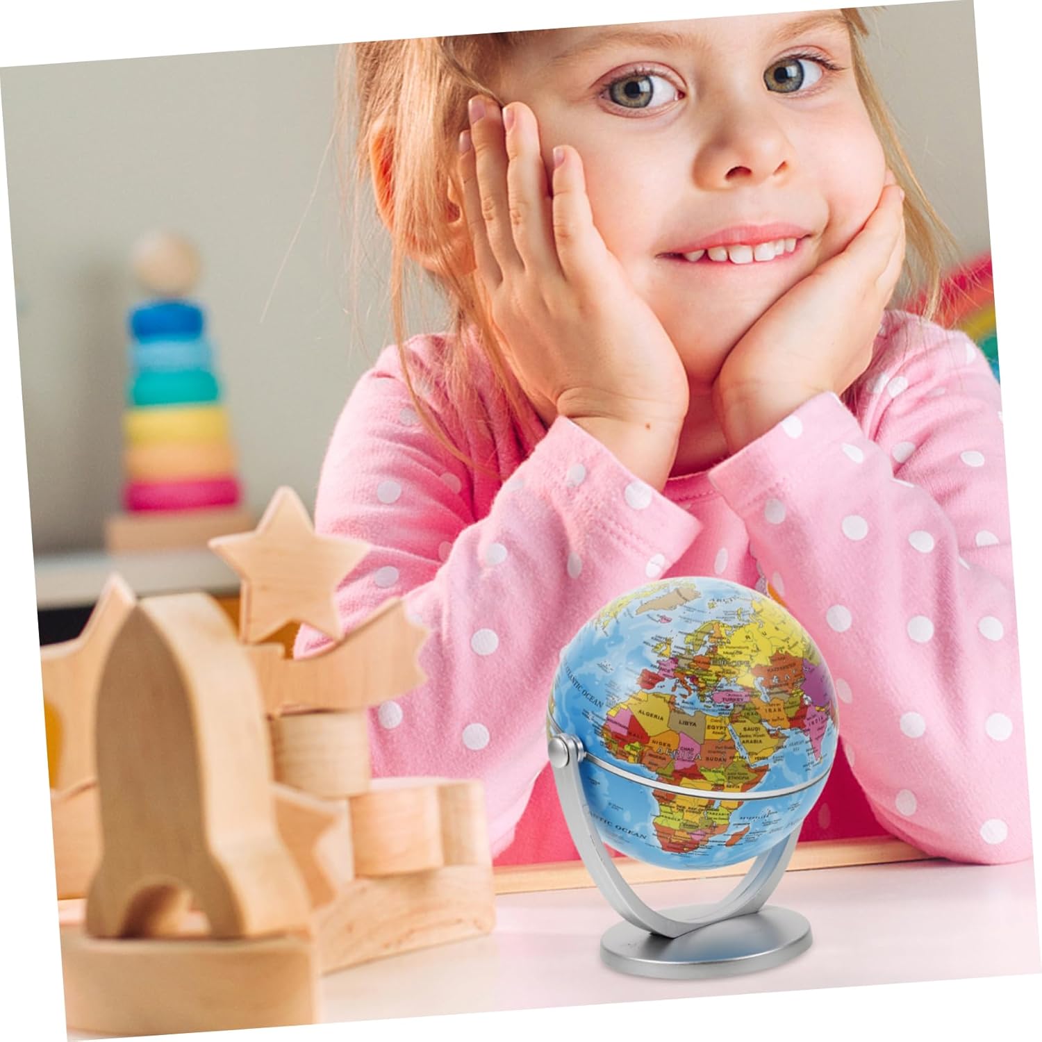 Senza intoppi: si posiziona senza intoppi su un supporto stabile, consentendo agli utenti di esplorare facilmente varie regioni e paesi, globo per la classe, mappamondo per la classe Funzionalità ed estetica: questo globo è un buon mix di funzionalità ed estetica, fungendo sia da strumento educativo che da elegante elemento decorativo, materiali geografici, globo terrestre Apprendimento della geografia: incoraggia gli studenti ad apprendere la geografia e le diverse culture, rendendolo un eccellente strumento educativo precoce, globo rotante, globo terrestre Unico ed elegante: il suo design chic aggiunge un tocco unico ed elegante a qualsiasi spazio, rendendolo un pezzo d'arredo alla moda, ornamenti di globo di plastica per l'artigianato, globi scolastici Divertente e interattivo: progettato per catturare le menti, offre un modo divertente e interattivo per gli studenti di imparare la geografia, la decorazione del globo terrestre, la palla del globo terrestre