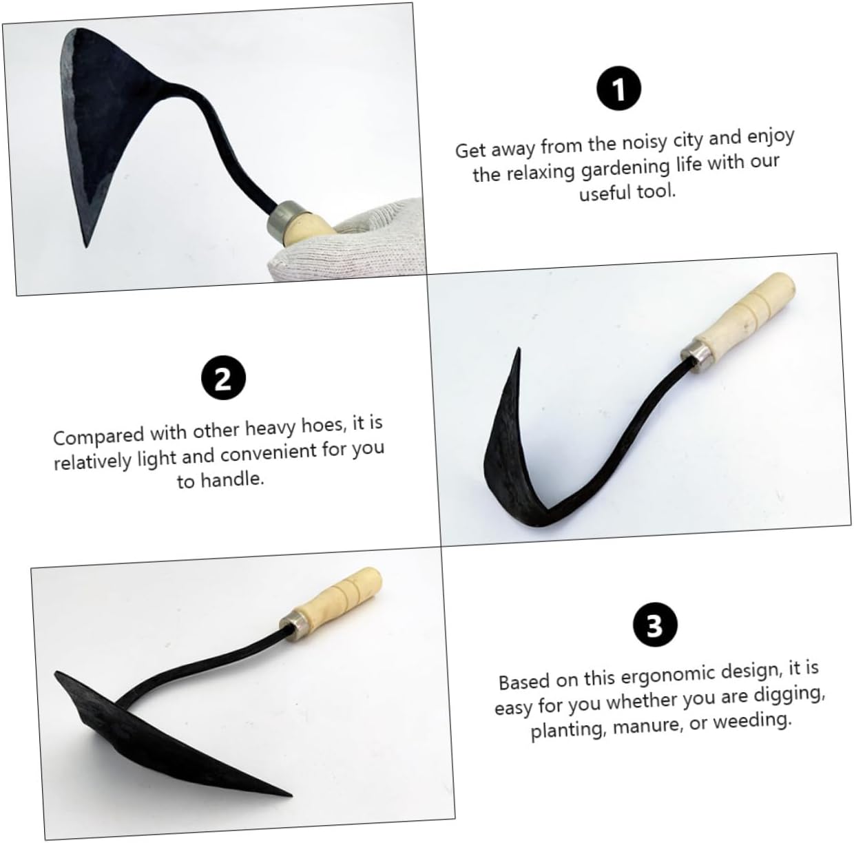 Portatile: realizzata in , è pratica e durevole, per diserbo Strumento per zappare: serve per scavare, smuovere terreno, trapiantare bonsai, ecc., da giardinaggio Con manico in legno: allontanati dalla rumorosa città e goditi la rilassante vita del giardinaggio con strumento, la Strumento per zappare : basato su questo design ergonomico, è facile stia scavando, piantando, concimando o diserbando, piantando la Attrezzo da giardinaggio: con impugnatura antiscivolo, è più da impugnare, forgiata