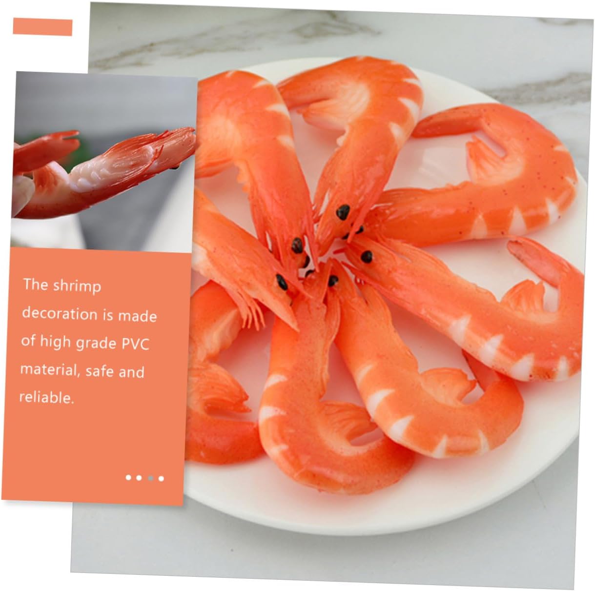 Di simulazione di gamberetti : questo cibo finto da esposizione può essere utilizzato in molti , puoi aggiungere creatività e idee con infinita immaginazione, decorazioni di gamberetti Decorazione di gamberetti: lavorazione, struttura ragionevole, professionale e pratica, può offrirti praticità, simulazione di cibo Gamberetti finti realistici: l'aspetto del giocattolo a forma di gamberetto è altamente simulato e le sue dimensioni e il suo colore sono molto simili ai veri gamberetti, oggetti di scena per cibo finto Gamberetti finti di scena: non si usurano o si strappano facilmente, non sbiadiscono né si deformano a lungo, oggetti di scena per l'esposizione di cibo Cibo finto da esposizione: sembra molto reale, realistico, molto accattivante e ti offre un'esperienza e piacevole, oggetti di scena per cibo artificiale