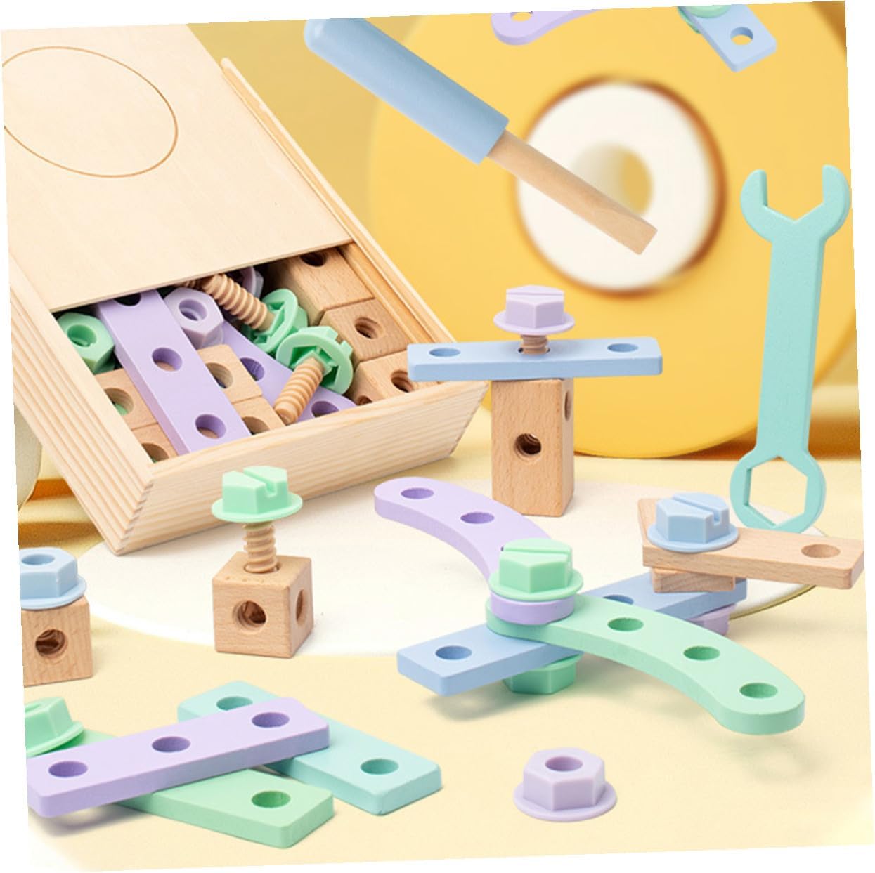 Giocattolo per : presenta un aspetto accattivante, progettato specificamente per attrarre i , rendendolo un giocattolo attraente con cui interagire, piccoli giocattoli da costruzione Giocattoli da costruzione: questo giocattolo aiuta i a sviluppare la loro abilità pratica e la coordinazione occhio-mano consentendo loro di assemblare e bulloni, un interessante giocattolo didattico Strumento per : splendidamente progettato e colorato, questi giocattoli possono attirare l'attenzione dei , il che è molto utile e divertente, giocattoli da costruzione in legno Giocattolo per : incoraggiando i a usare la loro immaginazione, questo giocattolo stimola il loro pensiero creativo, giocattolo da banco per Kit di strumenti per : offre ai infinite possibilità di intrattenimento, consentendo loro di esplorare diversi di giocare e divertirsi, imparando con i giocattoli