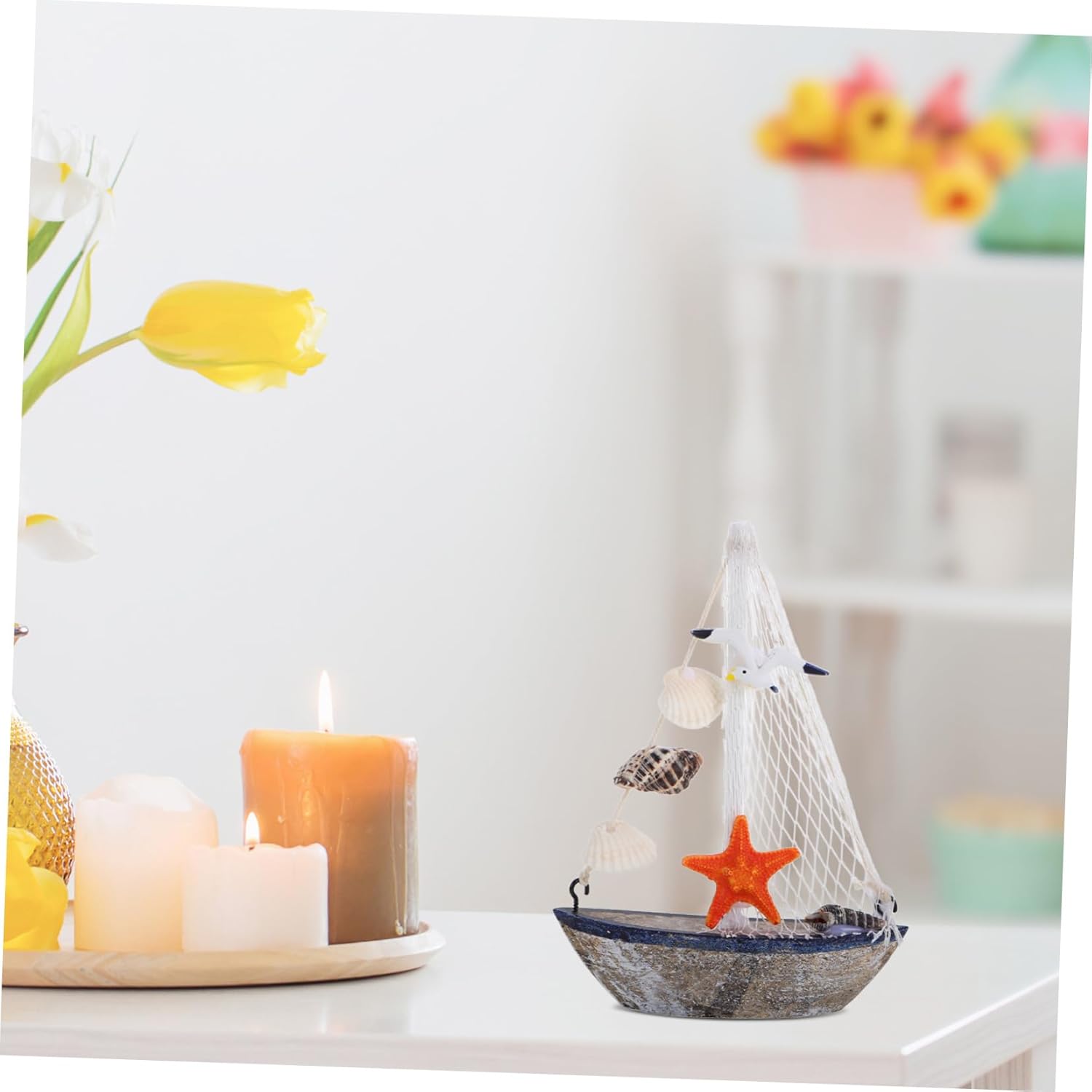 Uso flessibile: adatto a vari ambienti come uffici, soggiorni, studi e camere da letto, il di mini barca a vela valorizza qualsiasi spazio con la sua atmosfera artistica, decorazioni luminose per la casa, accessorio per barca a vela Immagini rilassanti: l'aspetto tranquillo del di mini barca a vela può aiutare a rilassare la da una vita frenetica, ornamento di boa marina, arredamento nautico per esterni Artigianato squisito: questo mini di barca a vela è realizzato con precisione, con dettagli realistici che danno vita allo stile mediterraneo nella tua casa, decorazioni a conchiglia, decorazioni da parete sulla spiaggia Decorazione unica per la casa: come ornamento da tavolo, questo mini di barca a vela aggiunge un tocco unico all'arredamento della tua casa, mettendo in mostra il tuo gusto e stile di vita, di barca a vela, decorazioni per shower a tema pesca Pezzo decorativo unico: come decorazione da tavolo, questo mini di barca a vela aggiunge un tocco unico all'arredamento della tua casa, mettendo in mostra il tuo gusto raffinato e il tuo stile di vita, mini barca a vela, faro