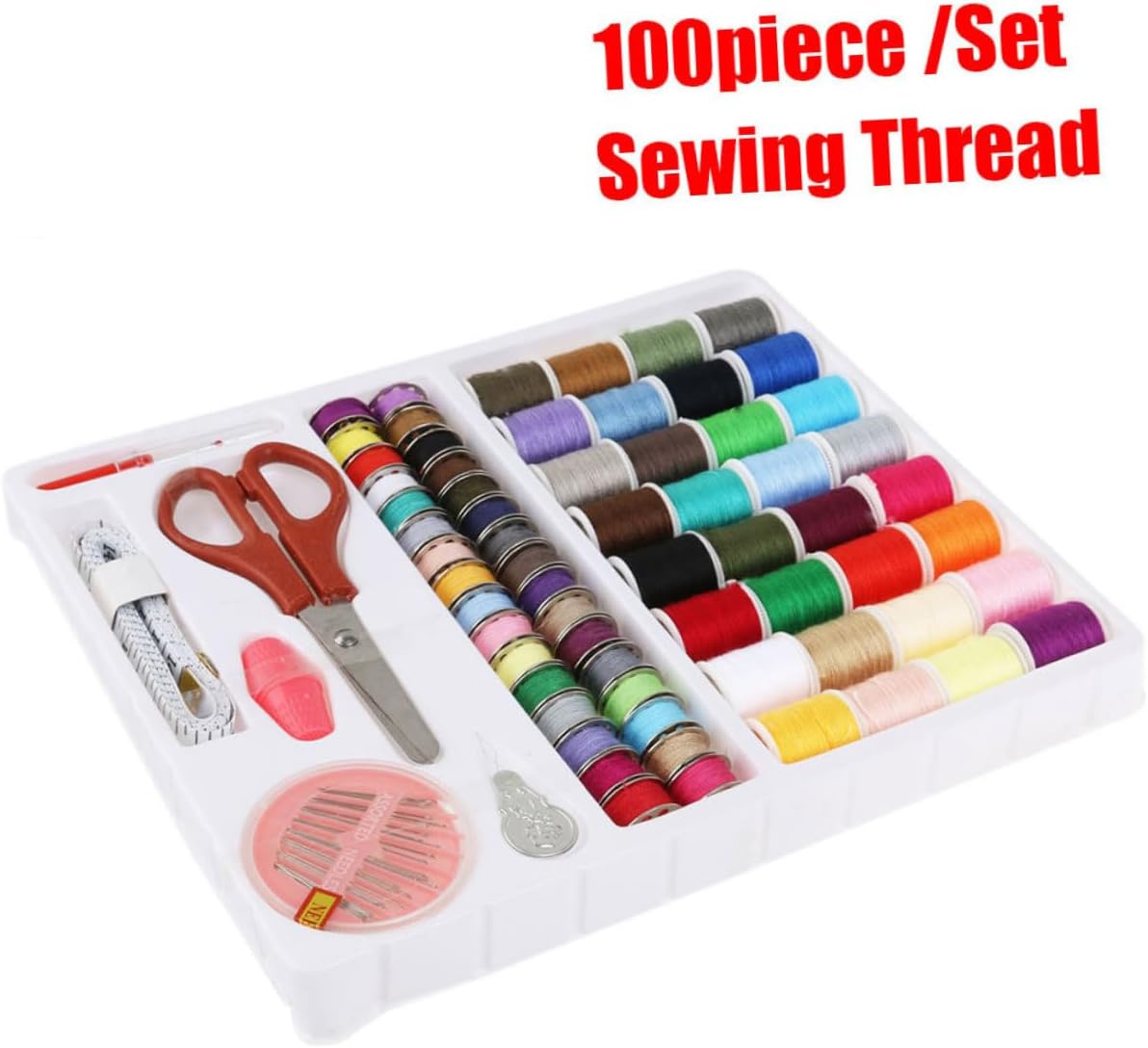 Kit da cucito per adulti: il kit da cucito 100 in 1 include i tipi di accessori necessari per i tuoi progetti di cucito e artigianato, kit da cucito per adulti Colore: materiale colorato: plastica, metallo e filo di cotone, kit da cucito, macchina da cucire per domestico Inclusi: 32 rocchetti di filo assortiti, 32 di metallo abbinate, 30 aghi in scatola, un metro a nastro, un paio di forbici, 2 ditali, un infila ago e uno scucitore, kit per progetti di cucito, kit di cucito base Primo kit da cucito: per l'uso domestico e in viaggio, come regalo per adolescenti e principianti che necessitano di alcuni strumenti di cucito di base