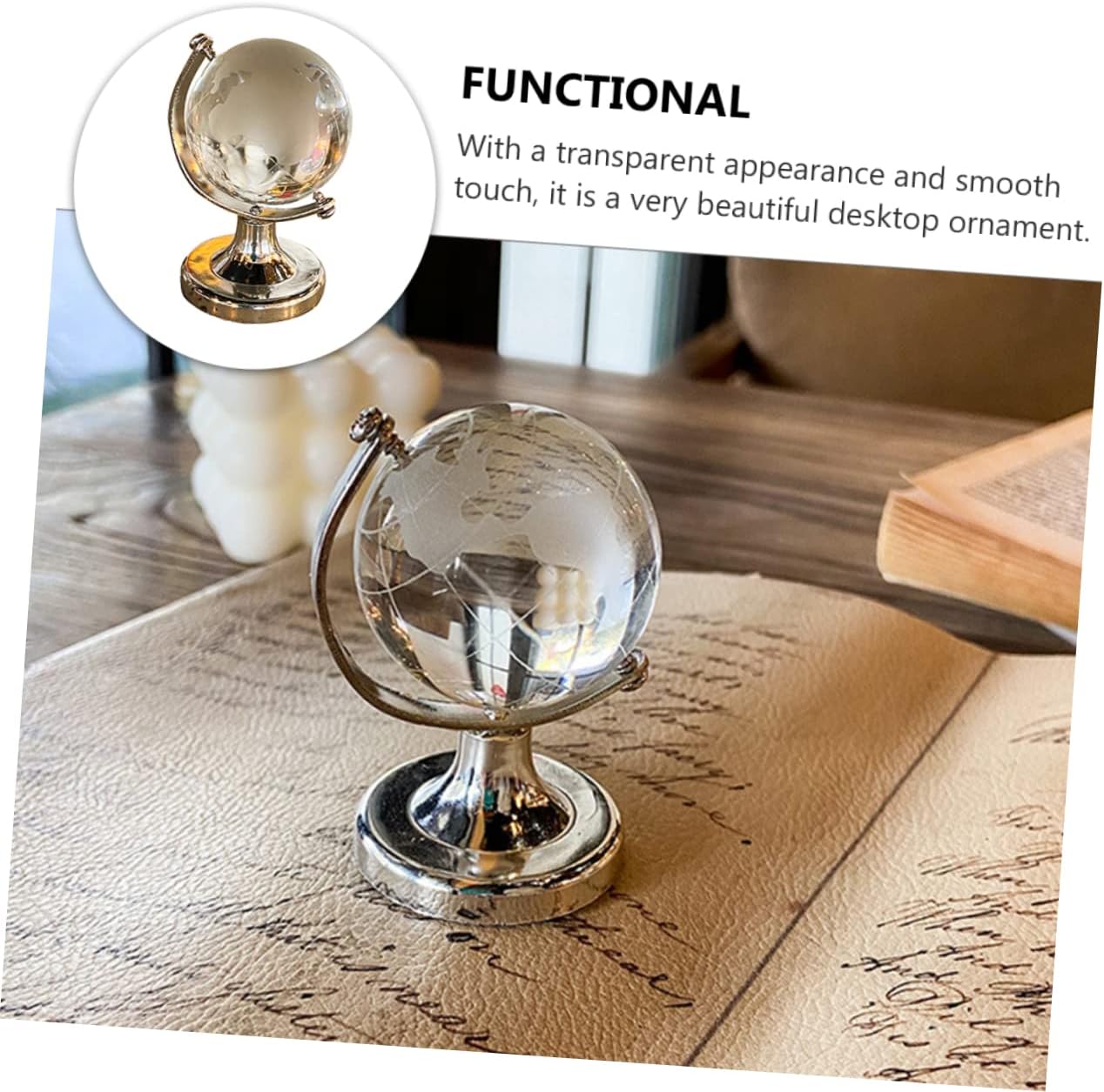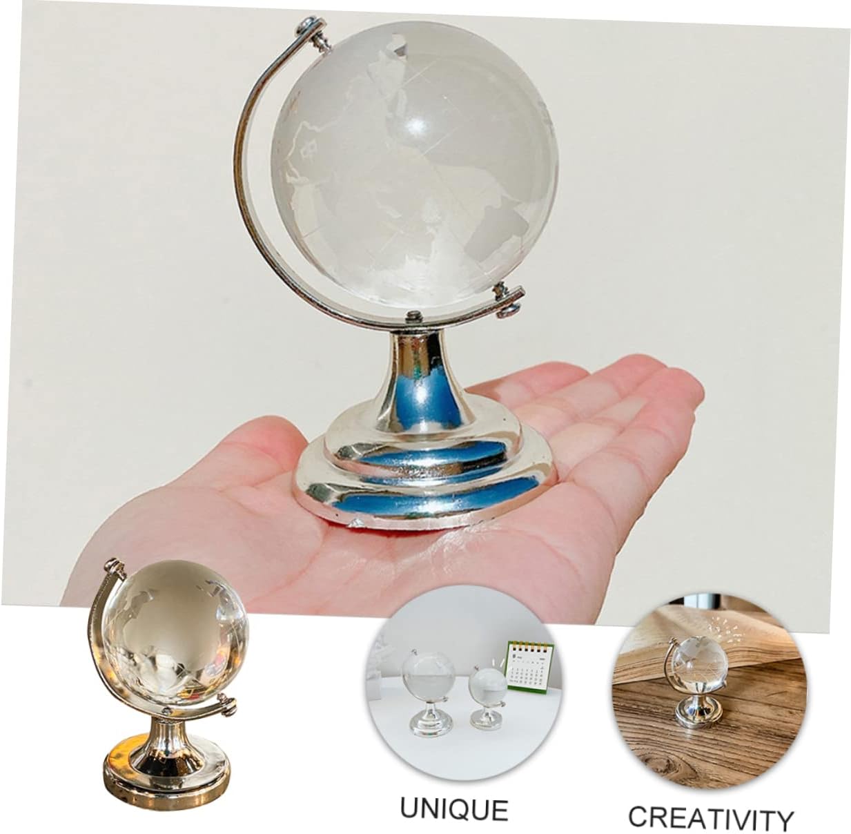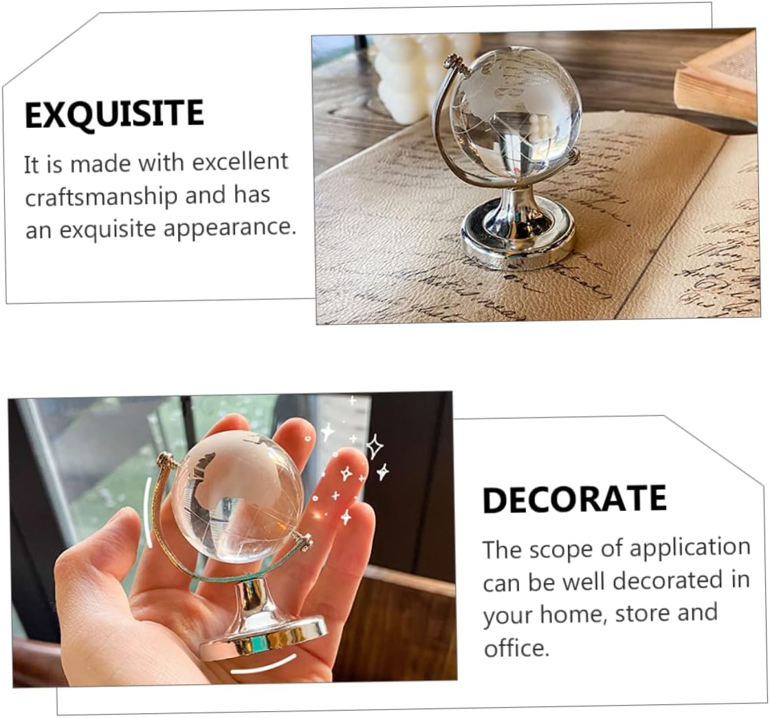 Decorazione del tavolo da pranzo: con un design mini, è compatto e pratico e ha un buon effetto decorativo. Giocattoli da scrivania - design significativo: il nostro globo di cristallo possiede potere, che può portarti fortuna e felicità, e prende tutto il dolore e il dolore. Decorazioni per ufficio: con un aspetto trasparente e un tocco morbido, un e pratico ornamento da scrivania. Arredamento retrò: puoi acquistare questo mini globo ornamentale creativo e squisito a un . Decorazione del piano del tavolo: materiali preferiti per l'ornamento del desktop con sfere di cristallo, sicuri e pratici.