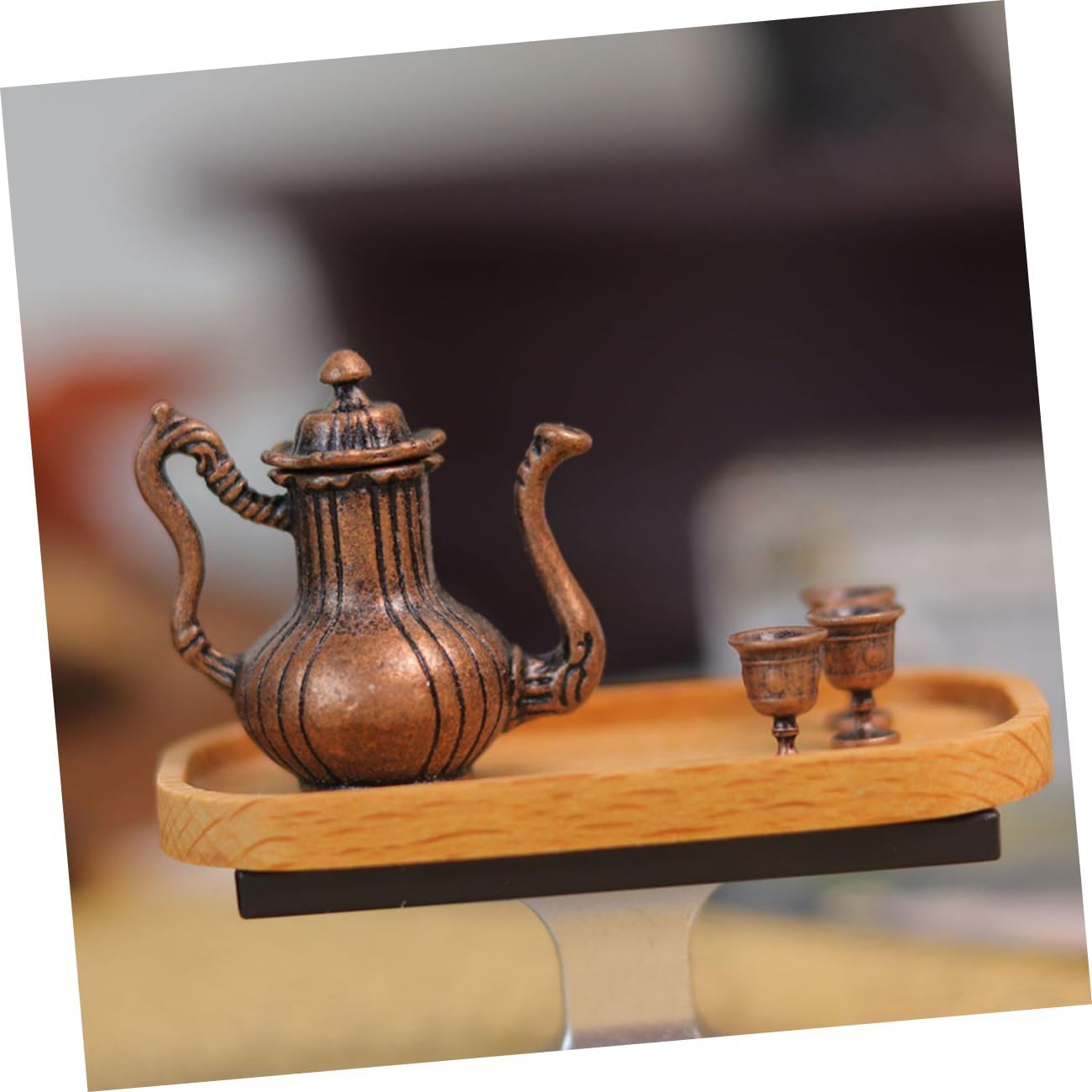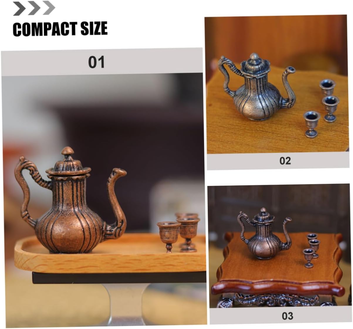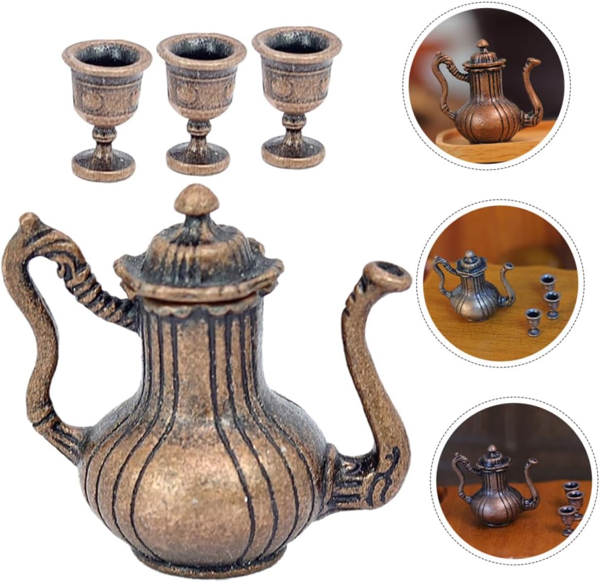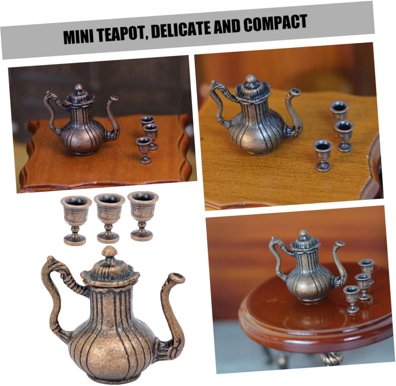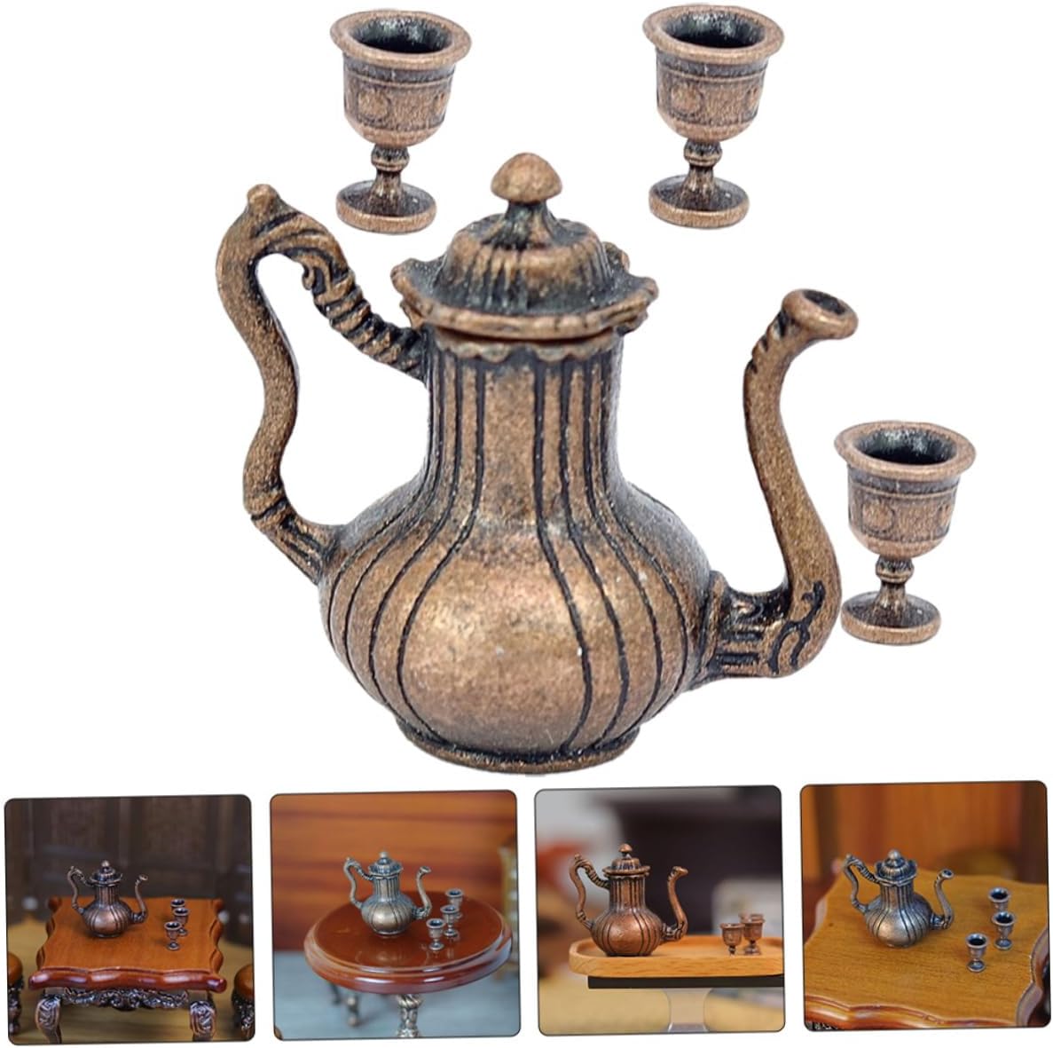 I modelli di set da tè in miniatura squisiti e realistici possono essere utilizzati per gli accessori della mini casa delle bambole. Il antico, aggiunge un'atmosfera culturale alla tua casa delle bambole, soddisfa le tue esigenze di decorazione. Realizzato con materiali in lega e realizzato a mano, garantendo la qualità e la durata del set di teiere. Adatto a diverse scene della casa delle bambole, rendi la tua casa delle bambole più colorata con questo set da tè. Il mini ornamento è realizzato in materiale metallico con lavorazione delicata e buon effetto decorativo.