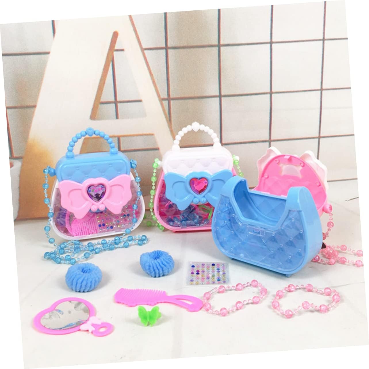 Abito per bambini: con ogni forma liscia, i bambini possono giocare in sicurezza. Questo set di portafogli è il compleanno perfetto per Natale per ragazze, nipoti, accessori per la toeletta: design colorato, comodo per sviluppare capacità visive e capacità di coordinazione occhio-mano. Fornitura per ragazze - Presenta un aspetto colorato, può essere utilizzato per sviluppare la cognizione del colore dei bambini e la coordinazione occhio-mano. per bambine: bellissimi gioielli aggiungono sorpresa e fascino alla ragazza. un'elegante borsetta brilla per rendere la tua principessa più visibile per strada. lavanda kawaii. Giocattolo di bellezza per bambini: giocattolo cosmetico perfetto per giochi di finzione, feste di compleanno, travestimenti e attività divertenti quotidiane dei bambini.