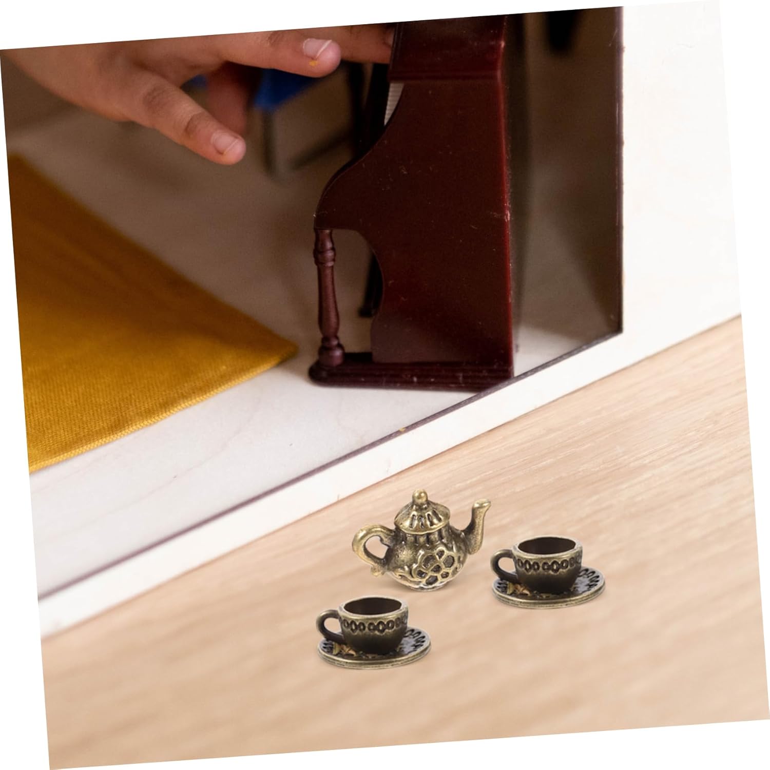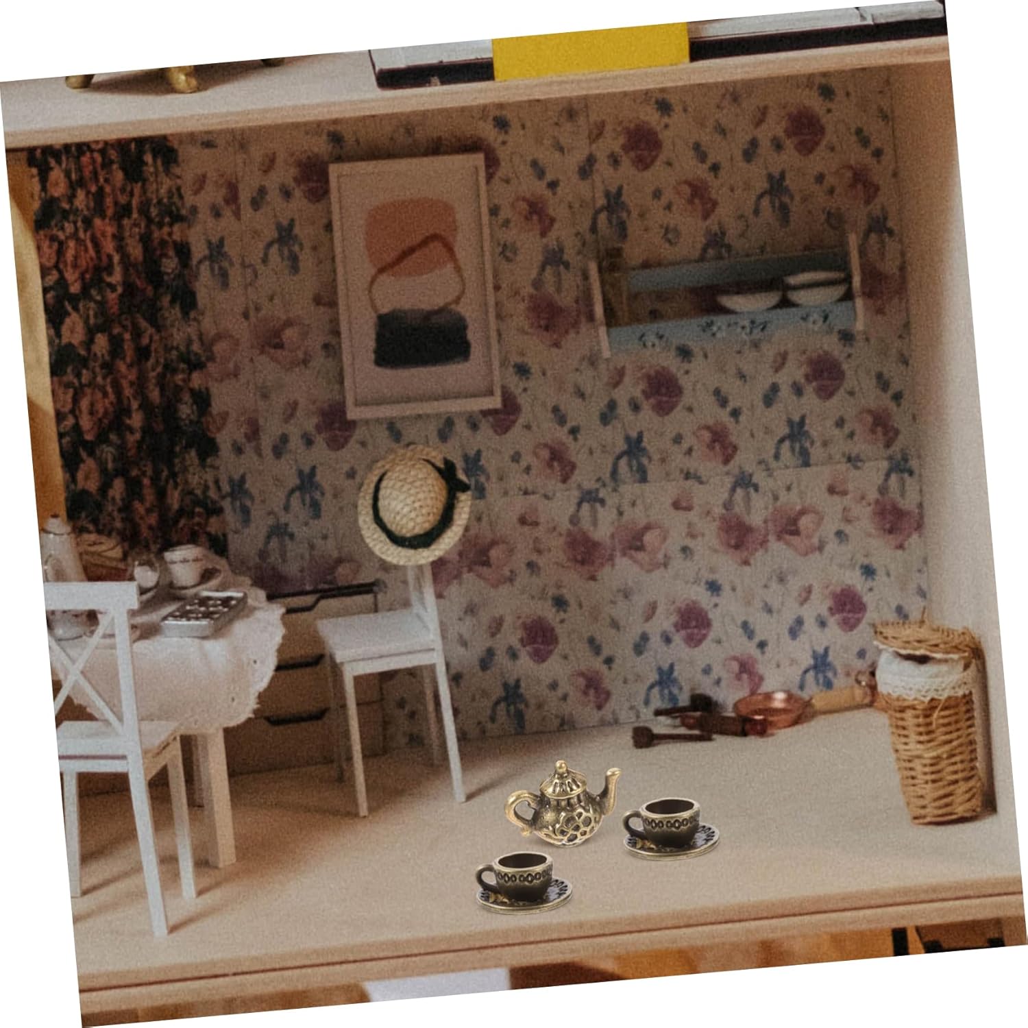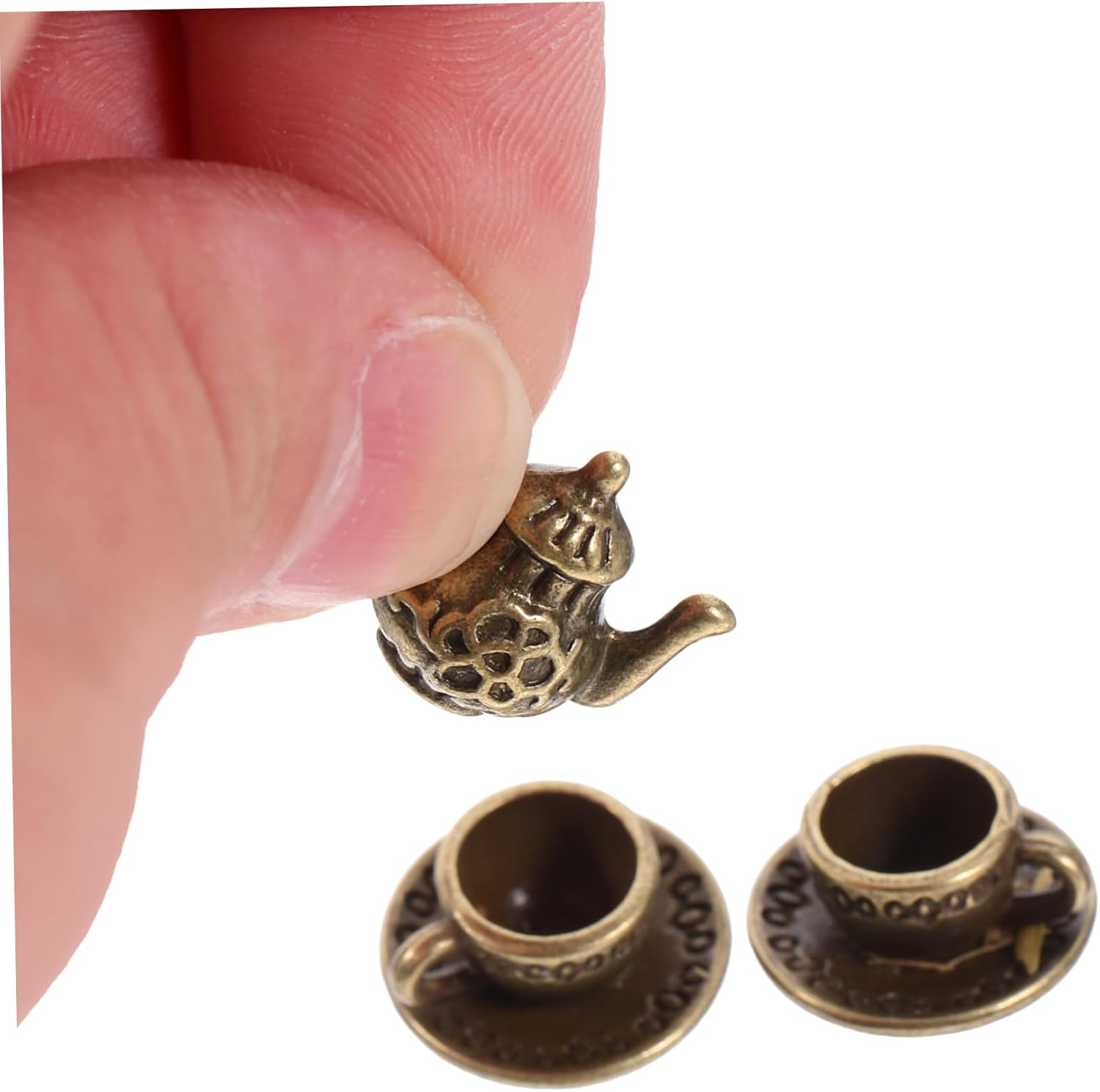 Accessori per giochi di finzione: i modelli di set da tè in miniatura squisiti e realistici possono essere utilizzati per gli accessori della mini casa delle bambole. Servizio da tè in in miniatura: progettato con stile squisito e vintage, questa tazza da tè e teiera in miniatura sembra elegante e . Accessori per il tè: sicuri e comodi da usare, facili da rompere o deformare, riutilizzabili e applicabili a lungo. Mini decorazioni per la casa: ornamenti adorabili e delicati, che sbiadiscono facilmente e rompono nemmeno se cadono. Tazza da tè in miniatura: modelli di set da tè in miniatura finemente realizzati per la casa delle bambole. vintage, aggiungendo un tocco classico alla casa delle bambole.