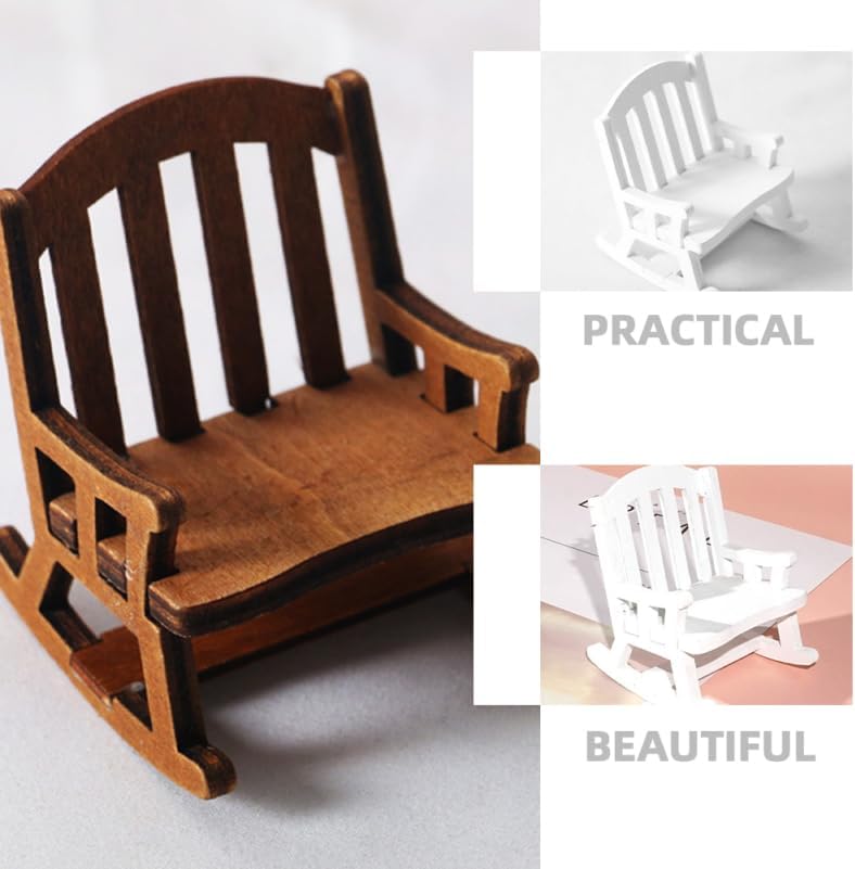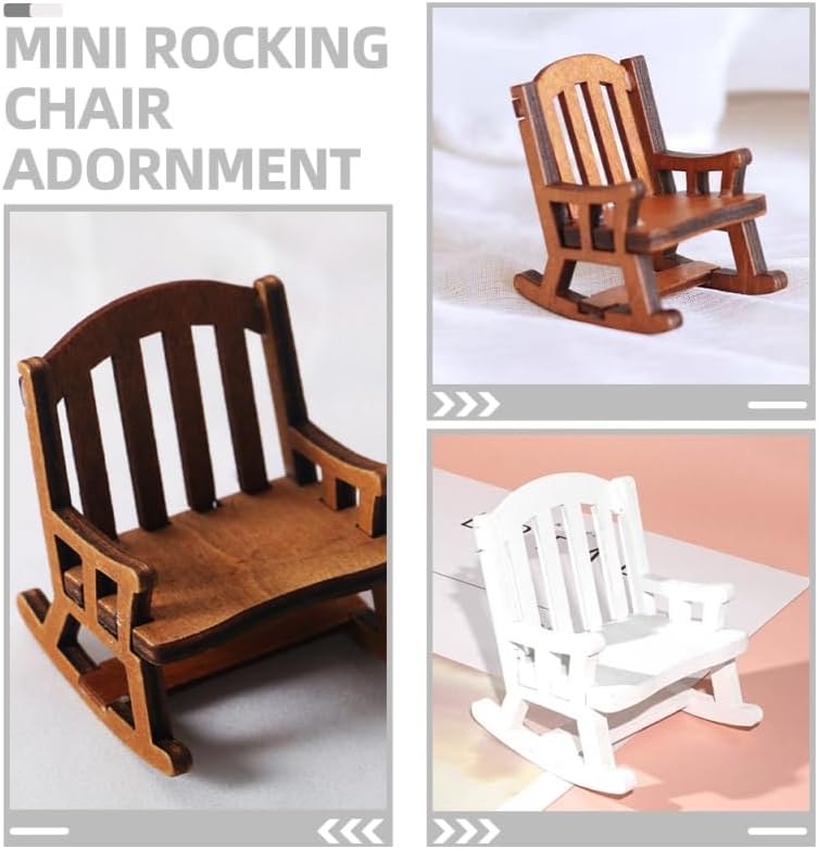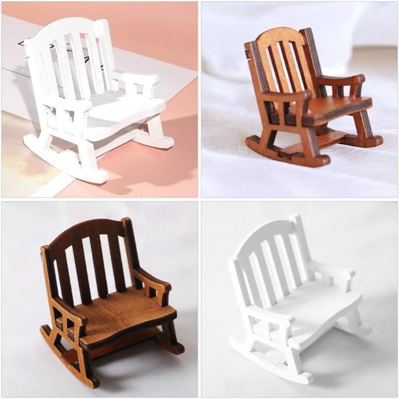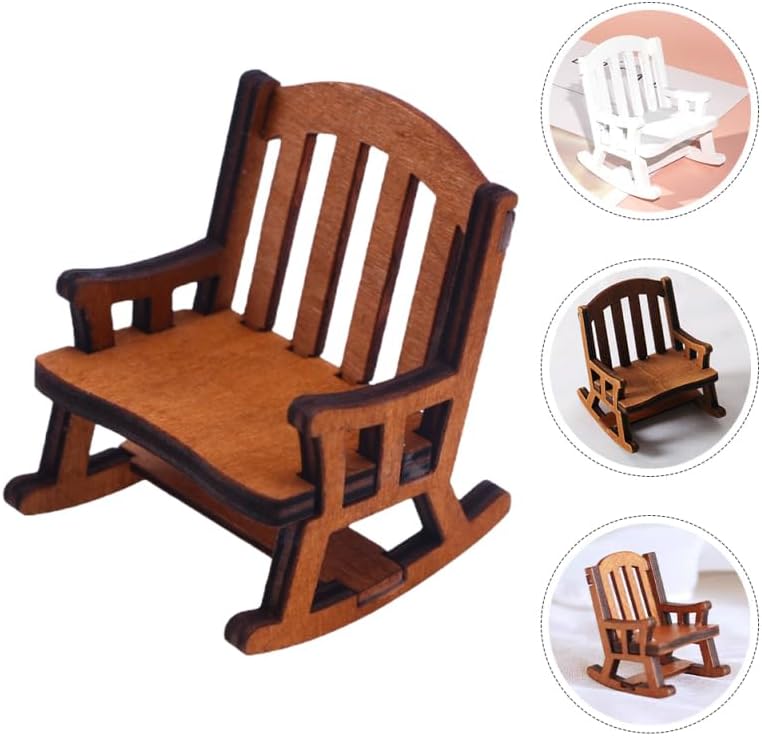 Decorazione per sedia a dondolo per casa delle bambole: versatile e versatile, può essere utilizzata per la decorazione in miniatura di scene di vita, lavori domestici, ecc. Mobili in miniatura: il materiale in legno sicuro e leggero, resistente all'usura e pratico per un uso prolungato. Modello di sedia per casa delle bambole: può anche essere posizionato come decorazione in camera da letto, per non renderla più così monotona. Sedia a dondolo in miniatura per bambole: la mini sedia a dondolo può anche essere combinata con altri accessori fai da te o utilizzata come accessorio di scena. Miniatura sedia ornamento: adatto per la decorazione di scena in miniatura, scena in miniatura, casa delle bambole o qualsiasi altro luogo che ti piace.