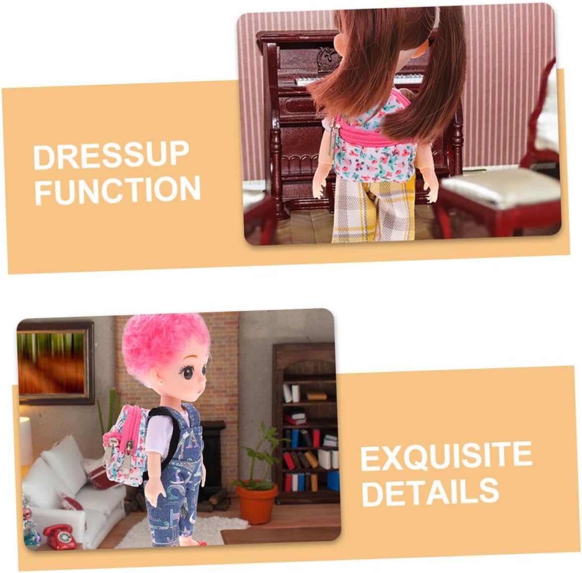 Design portatile: lo zaino per bambole è compatto e facile da trasportare, il che lo rende perfetto per i viaggi e i giochi all'aperto, mini borsa per bambole, accessorio per costumi da bambola Piccolo zaino per bambole: dotato di una funzione per vestire, questo zaino consente ai di scambiare gli delle loro bambole, aggiungendo un tocco di eccitazione e varietà al loro gioco fantasioso, borsa per accessori per bambole Vestire versatile: dispone di una funzione di vestire, che consente ai di cambiare i vestiti della loro bambola e di divertirsi con diversi scenari di gioco, mini bagaglio per bambola, mini borsa per accessori per bambola Protezione: lo zaino protegge efficacemente la bambola da danni e sporcizia, assicurandone la conservazione in condizioni ottimali, borsa per il trasporto della bambola, ornamento accessorio per bambola Protezione della bambola: mantiene la bambola al sicuro da danni e sporcizia, assicurando che rimanga pulita e ben tenuta, mini borsa per bambola, giocattolo zaino per bambola