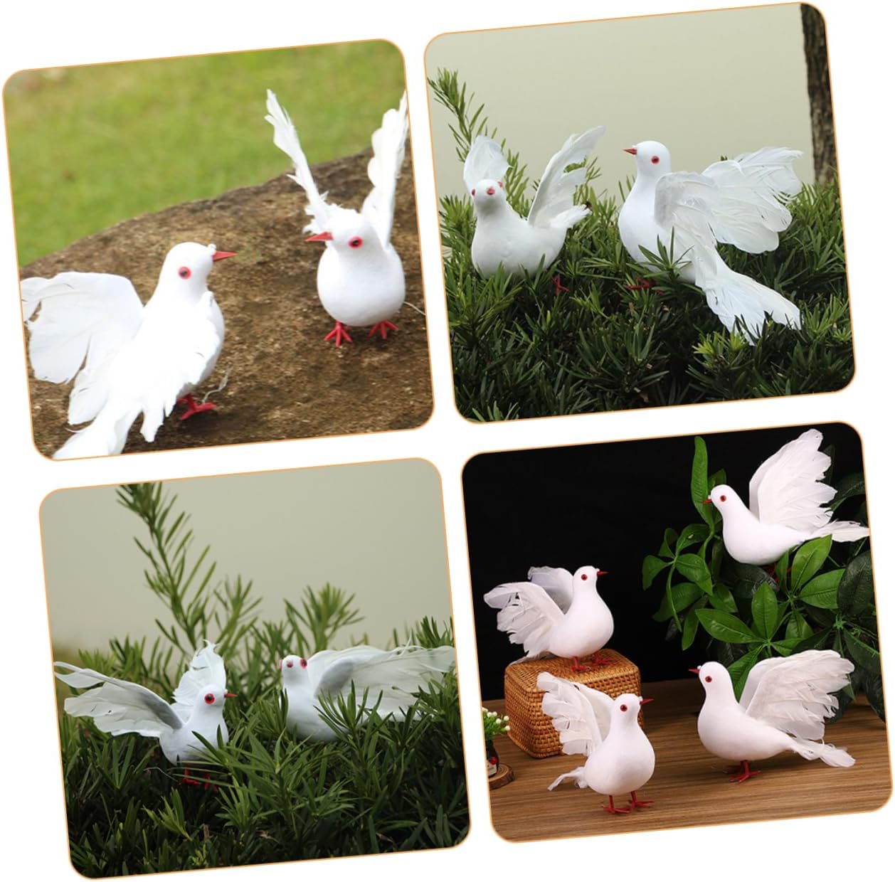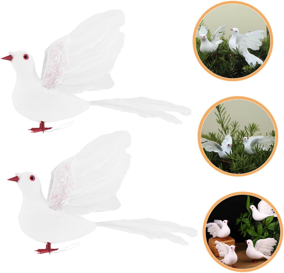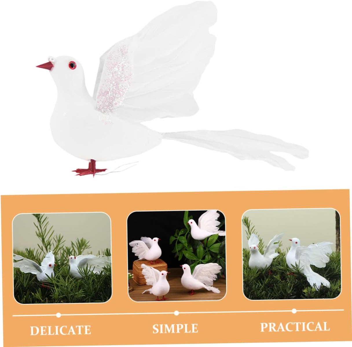 Aspetto realistico: queste colombe della pace artificiali presentano un aspetto realistico, rendendole ideali per creare un'atmosfera romantica per le nozze, decorazioni artigianali per matrimoni, grandi colombe volanti Leggero e portatile: questi ornamenti sono leggeri, il che li rende facili da maneggiare, posizionare e riporre quando non vengono utilizzati, piccione per decorazioni, colomba bianca ornamentale Simbolo di: le colombe bianche simboleggiano pace, amore e purezza, rendendole ideali per matrimoni e celebrazioni speciali, uccelli per decorazioni di feste, accessori per colombe nuziali Utilizzo versatile: adatte per decorazioni di centri commerciali, allestimenti per matrimoni e composizioni di piante, queste colombe sono versatili per vari scopi decorativi, colombe in schiuma artigianale, piccioni finti Decorazione versatile: ideale per matrimoni, alberi di natale, decorazioni per la casa, esposizioni da giardino e accessori per feste, queste colombe valorizzano ogni occasione, decorazione a forma di piccione , decorazione a forma di per l'albero di natale