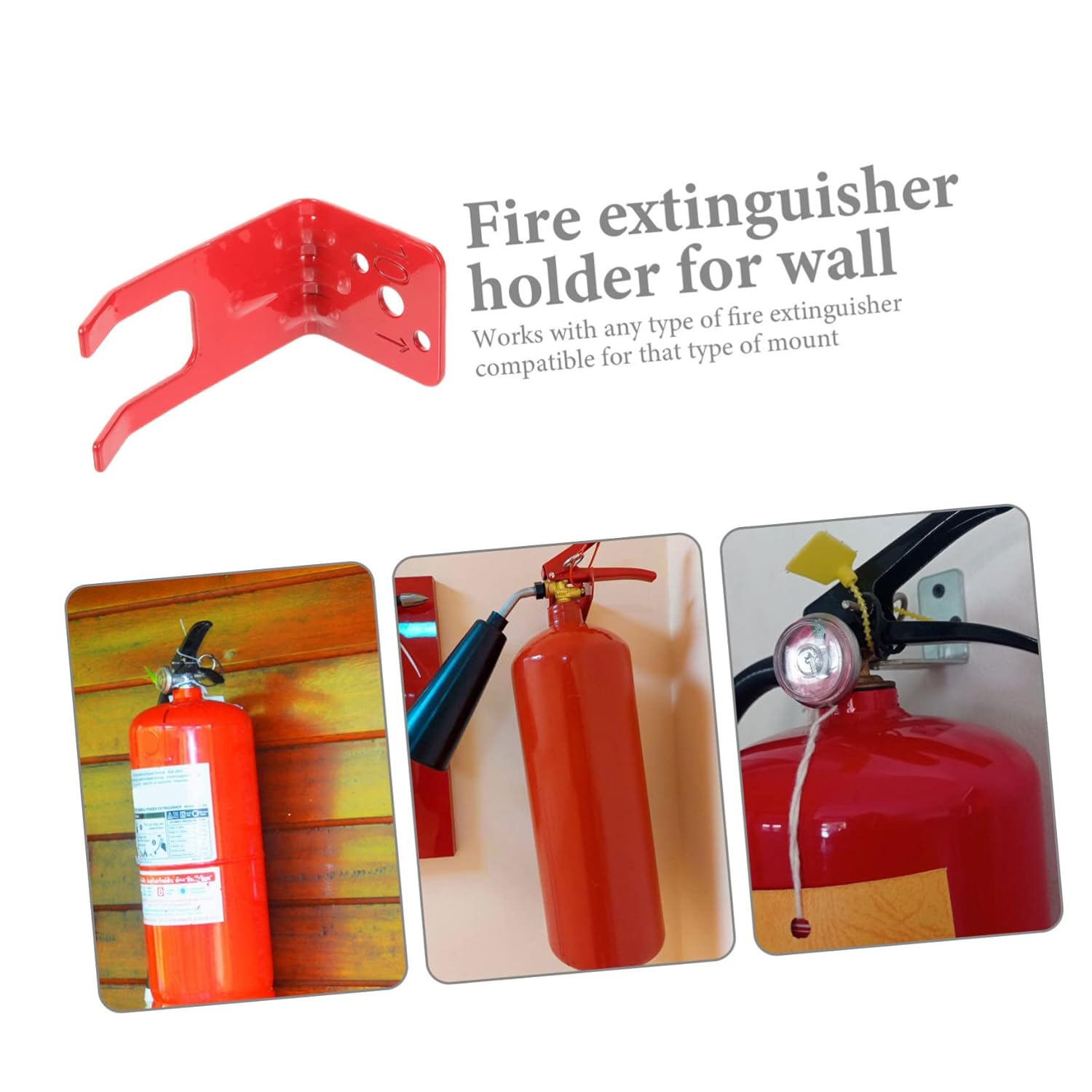 Staffa di montaggio per estintore: può essere utilizzata in scenari di navi, uffici, negozi, magazzini, case e automobili, gancio per estintore Supporto per estintore: ha un design semplice, ma è molto pratico nell'uso, il che ti offre comodità, supporto universale per estintore Supporto per estintore per auto: funziona con qualsiasi tipo di estintore compatibile con quel tipo di supporto il supporto in metallo per estintore è progettato per tenere l'estintore in posizione ed essere utilizzato facilmente in caso di emergenza, staffa di montaggio per estintore per auto Supporto per estintore: facile da installare e utilizzare, può essere facilmente montato sulla parete, consentendo un rapido accesso in caso di necessità, supporto per estintore a parete Supporto per estintore a parete: può essere installato praticamente ovunque, è un'aggiunta funzionale a ogni aula, casa, ufficio, barca, veicolo e così via, supporto per estintore a forma di l