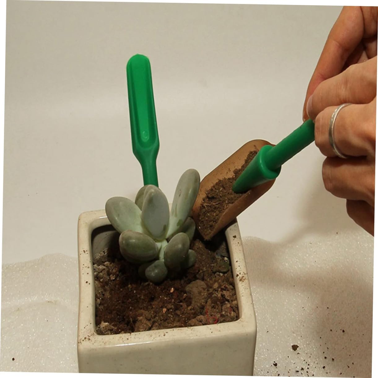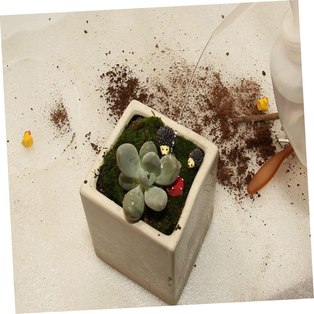Kit da giardinaggio: il design della bocca piegata dell'annaffiatoio può aiutarti ad annaffiare bene le radici delle piccole piante, la spazzola antipolvere è morbida, può facilmente spazzolare la polvere superficiale, strumento Strumento: il set può aiutarti ad allentare il terreno e a trapiantare le piantine in modo sicuro, strumento per il trapianto Strumento per il trapianto: perfetto per il giardino sul balcone, il mini giardino, lo strumento Distributore: e leggero il set include 1 bottiglia per l'irrigazione, 1 spazzola per la pulizia, 1 pala, 2 pinzette e 2 strumenti per il trapianto, strumento Questo set di attrezzi da giardino è un perfetto per gli amanti del giardinaggio