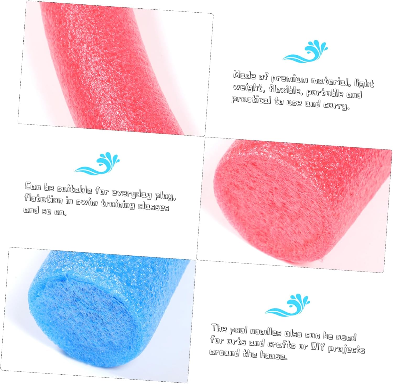 Piscina per bambini: offre un eccellente galleggiamento sia in piscina che in lago, sicura per l'imbottitura, protezioni di sicurezza come giocattoli creativi per bambini. usa la tua immaginazione per usarlo. Giocattolo da esterno: può essere adatto per il gioco quotidiano, galleggiare durante le lezioni di nuoto, ecc. Tagliatelle galleggianti per piscina: non solo possono essere utilizzate come tagliatelle per il nuoto, ma anche come strumento per giocare in acqua, rendendo il nuoto e il gioco in acqua più interessanti. Set da gioco all'aperto: i noodles da piscina possono essere utilizzati anche per progetti artistici e artigianali fai-da-te in casa. Giocattolo per bambini: i noodles galleggianti per piscina sono progettati per i principianti di nuoto con attrezzatura per l'assistente di nuoto.
