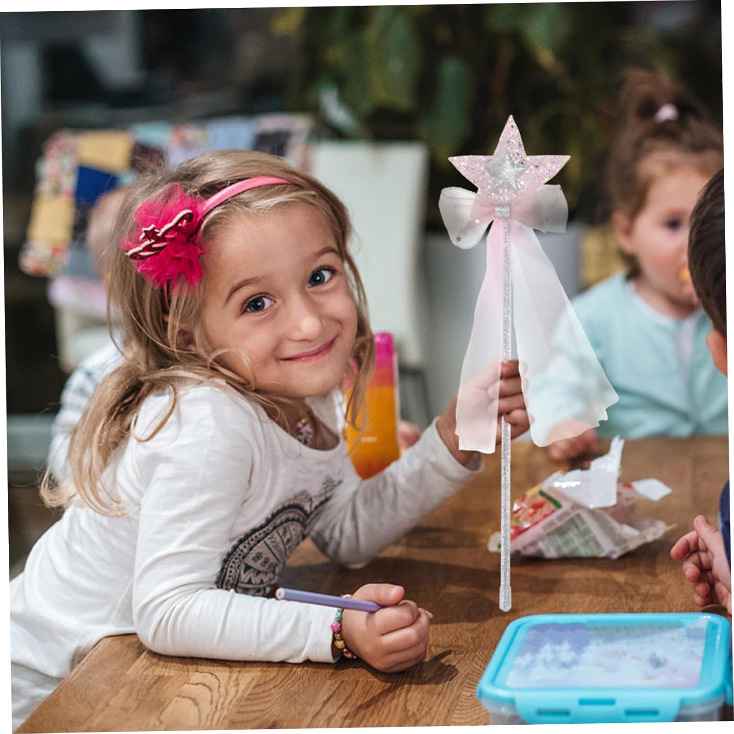 Bacchetta magica progettata: queste bacchette magiche sono realizzate in materiale di alta qualità e un giocattolo per bambini Oggetti di scena per festival: ideali per il compleanno della tua bambina o una festa di Halloween o qualsiasi altra occasione, bastoncino per bambini Bastone per feste per festival: la stella unica sulla bacchetta ha un bellissimo effetto scintillante e fornisce un migliore effetto decorativo, oggetto per feste Bacchetta di compleanno: il design delicato può dare alle persone una sensazione visiva e aiutare a creare un'atmosfera festosa. Bacchetta magica per il compleanno: realizzata in materiali plastici, la forma è vivida e molto attraente per . bacchetta magica per ragazze