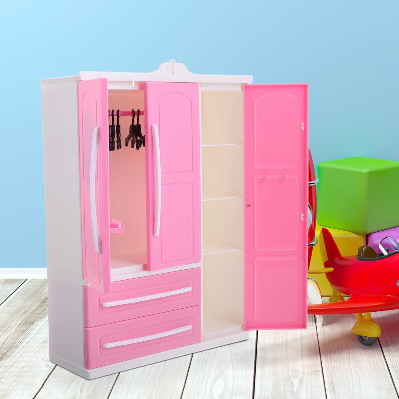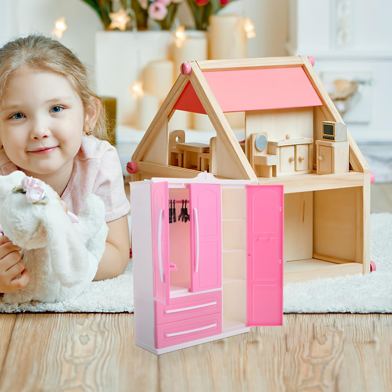 Aspetto elegante: il design elegante del guardaroba aggiunge un tocco speciale a qualsiasi area. Gruccia appendiabiti per bambole Per case delle bambole: questo armadio valorizza l'immagine complessiva di ogni casa delle bambole con il suo design elegante, gancio per bambole, armadietto per giochi Migliora l'estetica della casa delle bambole: aggiungi un tocco di eleganza alla tua casa delle bambole con questo armadio splendidamente progettato, appendiabiti per bambole e mobili per bambole Versatile: questo armadio può essere utilizzato per riporre vestiti e come elemento decorativo di mobili in una casa delle bambole Design elegante: il design elegante dell'armadio lo rende un complemento per tutti, armadio delle bambole, armadio per la casa delle bambole