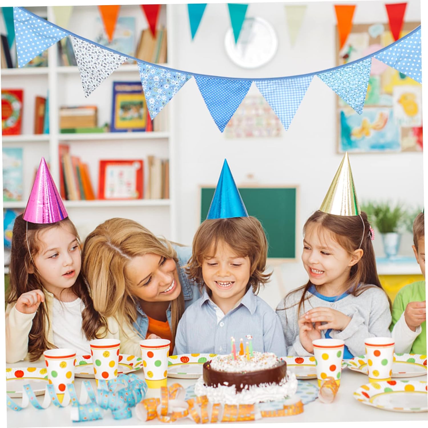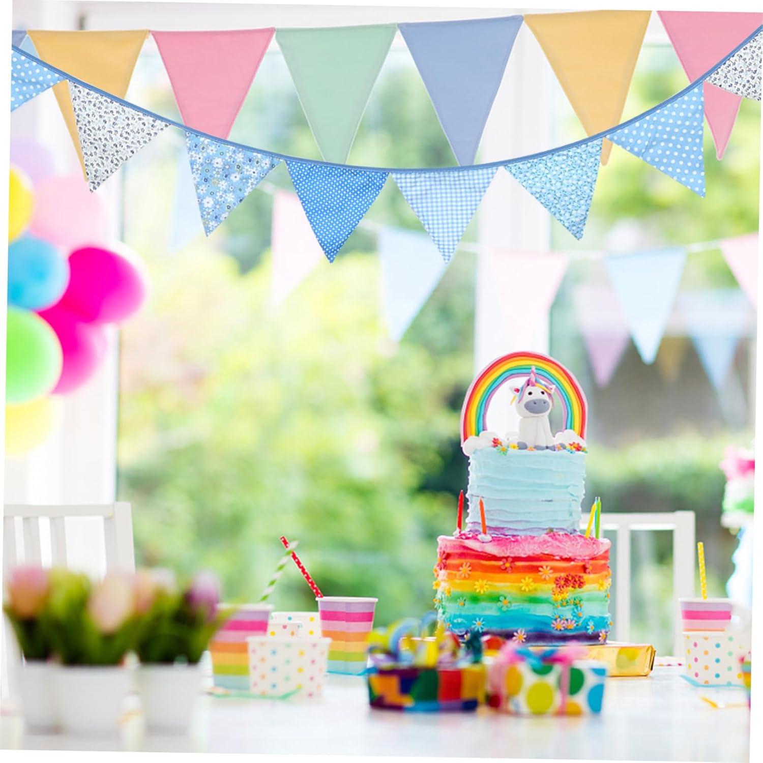 Bandierine triangolari: il colore blu aggiunge bellezza alla tua festa e la abbellisce. Bandierine triangolari sospese: puoi goderti questi semplici motivi in stile rurale, completamente freschi e naturali, bandierine triangolari per feste Ghirlande di bandiere per matrimoni - realizzate in tessuto di cotone di alta qualità, leggere e pratiche, come decorazione per le aule della scuola primaria Decorazioni per feste: pratiche e di bell'aspetto, aggiungono un'atmosfera allegra e accogliente alle feste di compleanno e di matrimonio Banner del festival: comodo da trasportare, facile da usare, questo striscione decorativo per feste ha un design semplice e una ghirlanda di bandiere colorate