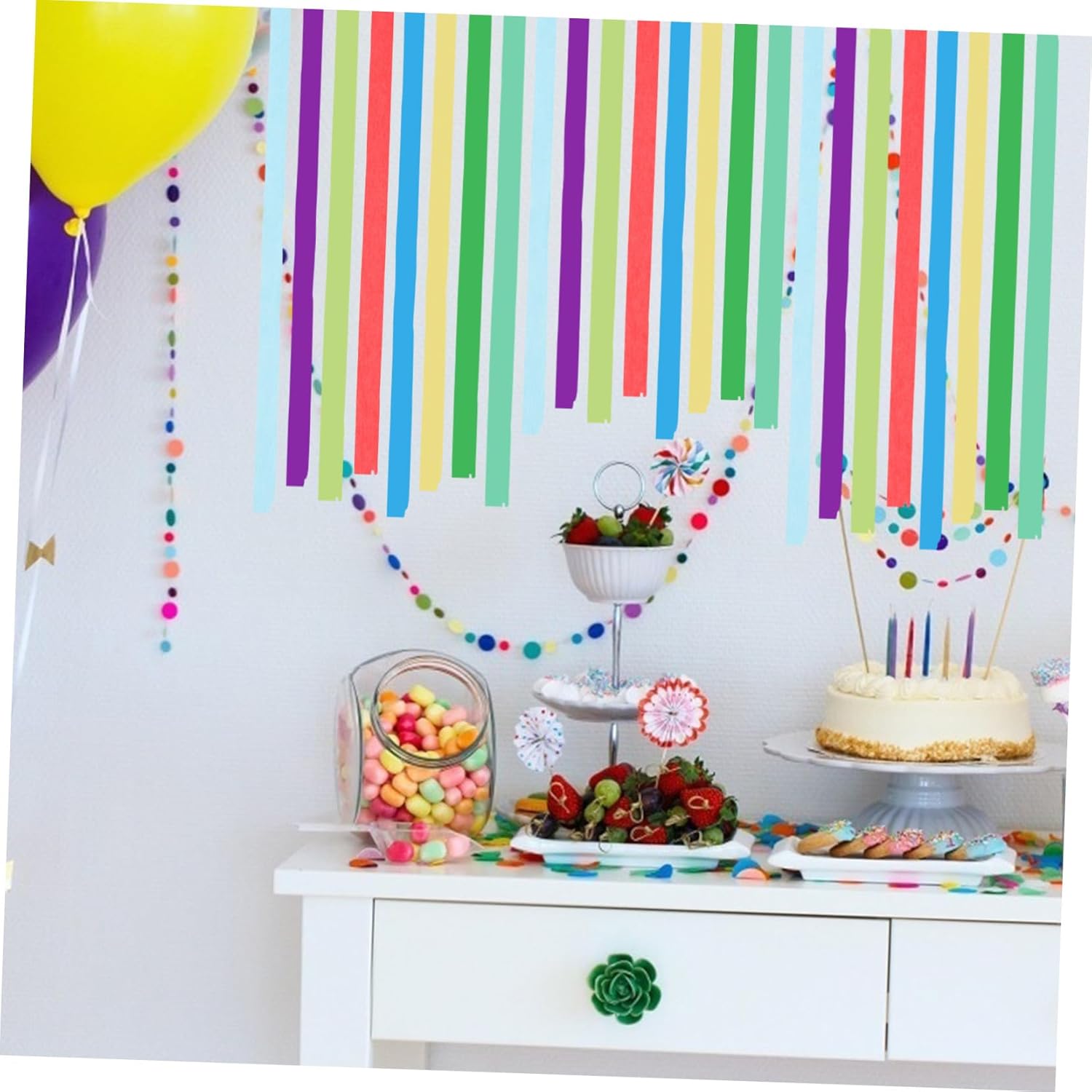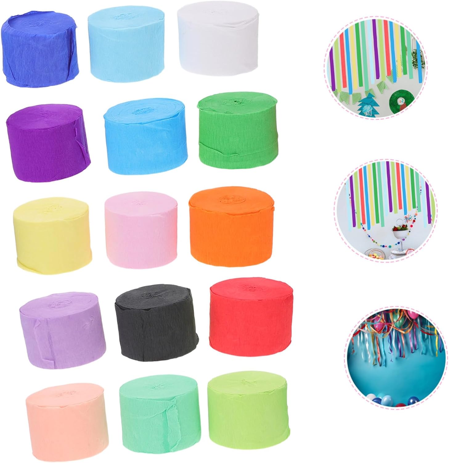 Riutilizzabili: realizzati in carta, questi rotoli di carta crespata possono essere riutilizzati per molteplici eventi, riducendo gli sprechi e mantenendo una decorazione vivace. Stelle filanti di buon compleanno, stelle filanti a nastro per aggiungere fascino colorato: questi rotoli colorati di carta crespa aggiungeranno un tocco di colore alla tua festa e sono ideali per decorazioni di compleanno in carta crespa o stelle filanti per le vacanze. Illumina qualsiasi cosa: questi stelle filanti colorati di carta crespa fatti a mano aggiungeranno vibrazioni vibranti a qualsiasi evento e sono un must per appendere decorazioni di compleanno o fondali per feste. stelle filanti per feste in carta, decorazioni in carta con ghirlande colorate Leggeri e senza danni: realizzati con materiali leggeri, questi rotoli di stelle filanti in carta sono facili da appendere e rimuovere, garantendo l'assenza di danni alle pareti o alle superfici per allestimenti temporanei di feste, decorazioni sospese per compleanni e decorazioni in carta colorata Facili da usare e versatili: questi rotoli di carta crespa sono flessibili e facili da appendere, rendendoli ideali per realizzare decorazioni con stelle filanti per feste o progettare decorazioni murali creative per compleanni, nastri colorati di carta, decorazioni per feste con stelle filanti
