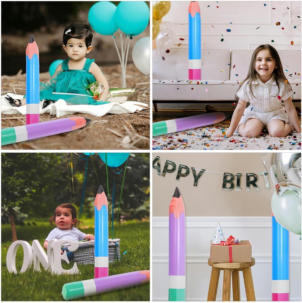 DECORAZIONE ACCATTIVANTE: queste matite gonfiabili sono decorazioni giganti e colorate che aggiungono un'atmosfera giocosa alle aule e agli eventi. Il loro design e i colori vivaci come il blu li fanno risaltare in ogni stanza e aggiungono entusiasmo alle celebrazioni del rientro a scuola. Selezione colorata: con una varietà di tonalità vivaci, questi palloncini a matita hanno qualcosa per soddisfare ogni gusto e stile. Che vengano utilizzati come decorazione per la classe, come oggetto di scena per una festa o come accessorio per il gioco, i loro colori vivaci ispirano la creatività e creano un'atmosfera festosa. Portatili e pratici: realizzati in PVC leggero, questi palloncini gonfiabili a pastello sono facili da sgonfiare, piegare e riporre. La loro portabilità li rende adatti per un rapido assemblaggio e trasporto in aule, feste o altri eventi. MULTIUSO - Queste decorazioni gonfiabili per il rientro a scuola possono essere appese al muro, utilizzate come oggetti di scena per i giochi o esposte alle feste a tema. Il loro design giocoso aggiunge fascino a qualsiasi evento e promuove un'atmosfera divertente e creativa. Facile manutenzione: realizzati in materiale PVC, questi oggetti di scena gonfiabili sono facili da pulire e mantenere. Grazie al loro design robusto, mantengono il loro aspetto vivace anche dopo un uso ripetuto, rendendoli una scelta affidabile per varie occasioni
