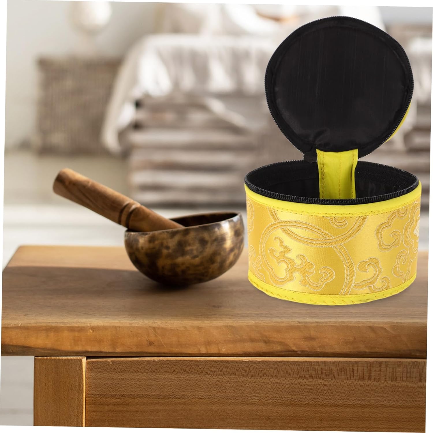 Bellissimo design: la piccola custodia presenta bellissimi design, rendendola un pezzo decorativo oltre che un articolo funzionale, delicata borsa per campane tibetane, campane sonore Patrimonio culturale: il design della borsa per campane tibetane mette in mostra il ricco patrimonio culturale del nepal, borsa per campane tibetane per la meditazione, custodia per campane tibetane Versatile: questa borsa per ciotole tibetane è adatta per riporre la tua ciotola buddista e altri piccoli oggetti, offrendo un'eccellente versatilità, custodia piccola, custodia per ciotole Comodo da trasportare: la custodia per campane tibetane buddha include un'elegante borsa per l'imballaggio, che la rende comoda da trasportare e riporre, ed è ideale per la presentazione, custodia per campane tibetane, campane musicali Realizzato artigianalmente: ogni piccola custodia per campane tibetane è realizzata a mano da abili artigiani in nepal, garantendo un tocco unico, borsa per campane tibetane buddiste, custodia per il trasporto di campane tibetane