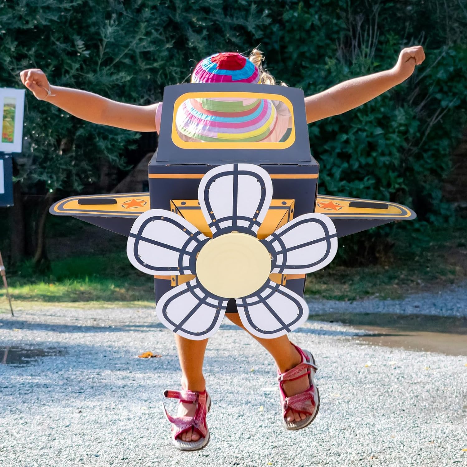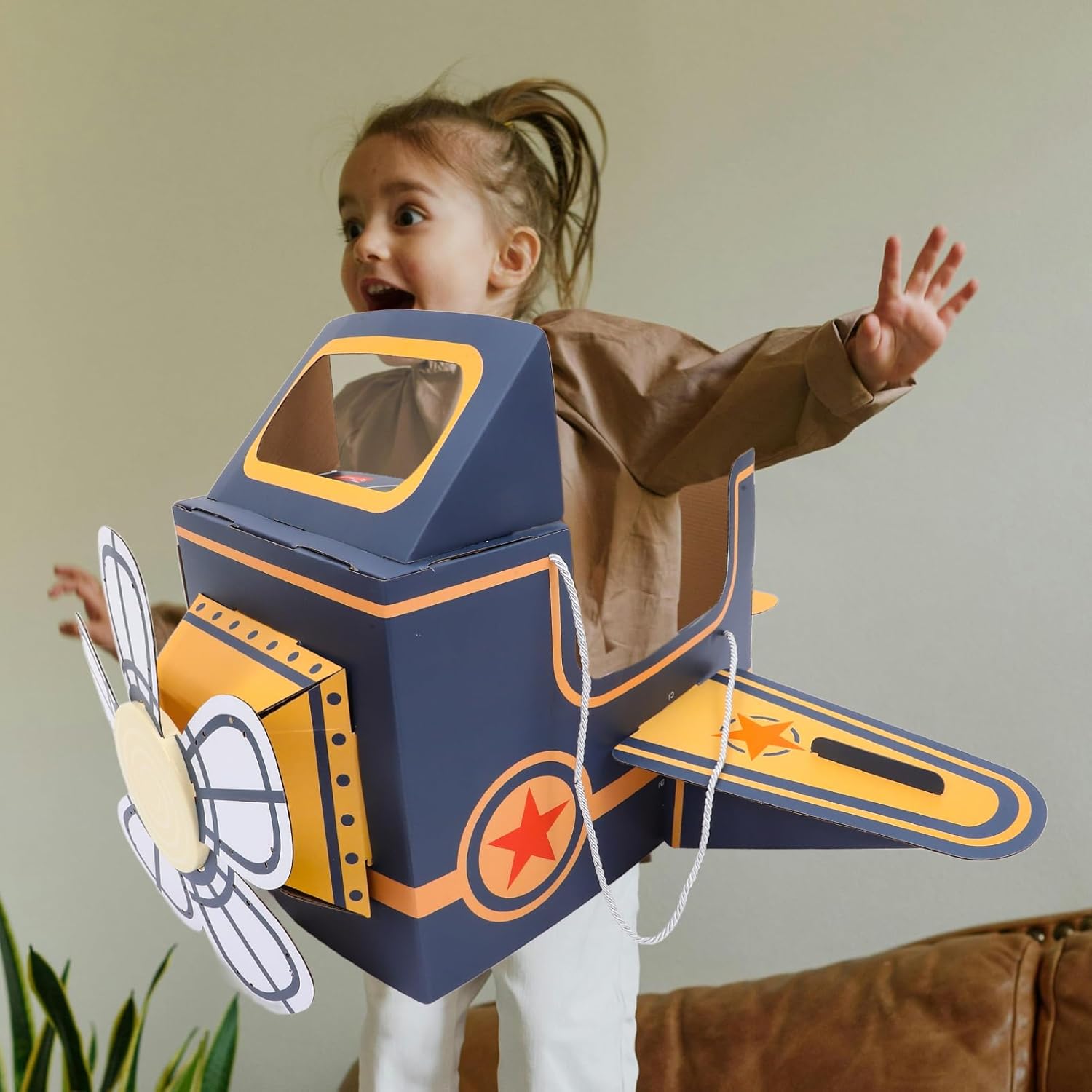 GIOCATTOLO INTERATTIVO: i giocattoli di cartone indossabili incoraggiano i bambini a collaborare e condividere le proprie creazioni con amici e familiari. L'aereo creativo stimola la curiosità e stimola il lavoro di squadra, rendendo il gioco più piacevole e memorabile per tutti. INFANZIA FELICE: il divertente aeroplano fai da te porta gioia ai bambini offrendo uno sfogo creativo alla loro immaginazione. Il design colorato e leggero fa i bambini mentre giocano, creando momenti felici e ricordi indelebili. Engaging Design:Cardboard airplane costume captivates children with its unique design, letting them pretend to fly through the skies. The comfortable and safe material makes it ideal for play sessions, keeping kids entertained Interactive Toy:Wearable Cardboard Toys encourage kids to collaborate and share their creations with friends and family. The creative airplane spark curiosity and inspire teamwork, making playtime more enjoyable and memorable for everyone Happy Childhood:Funny DIY Airplane brings joy to children by offering a creative outlet for their imagination. The colorful and lightweight design keeps kids smiling as they play, fostering happy moments and creating lasting memories