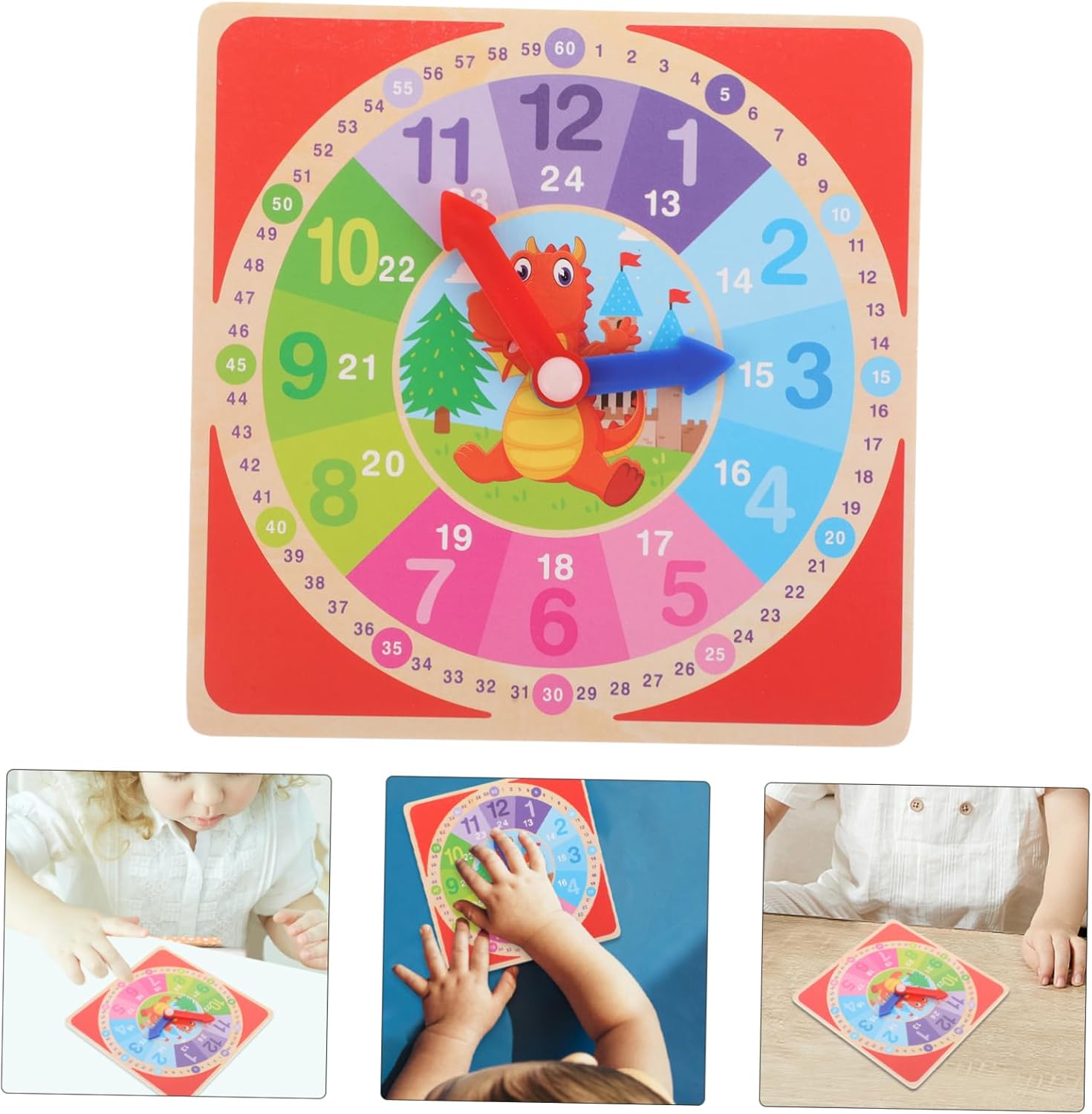 Squisita fattura: realizzato con squisita attenzione ai dettagli, questo orologio giocattolo in legno è durevole per essere utilizzato bambini Colori accattivanti: l'orologio presenta colori accattivanti che attirano l'attenzione dei bambini, rendendo il tempo di apprendimento più attraente Strumento di apprendimento: questo orologio funge da strumento di apprendimento, aiutando i bambini a imparare a leggere l'ora e a comprendere il concetto di ore e minuti Sviluppo delle abilità cognitive: il giocattolo dell'orologio promuove lo sviluppo delle abilità cognitive aiutando i bambini a i numeri e comprendere il concetto di tempo Per i bambini: questo giocattolo in legno è comunemente usato nell'insegnamento negli asili nido e può stimolare il divertimento dei bambini nella comprensione del tempo