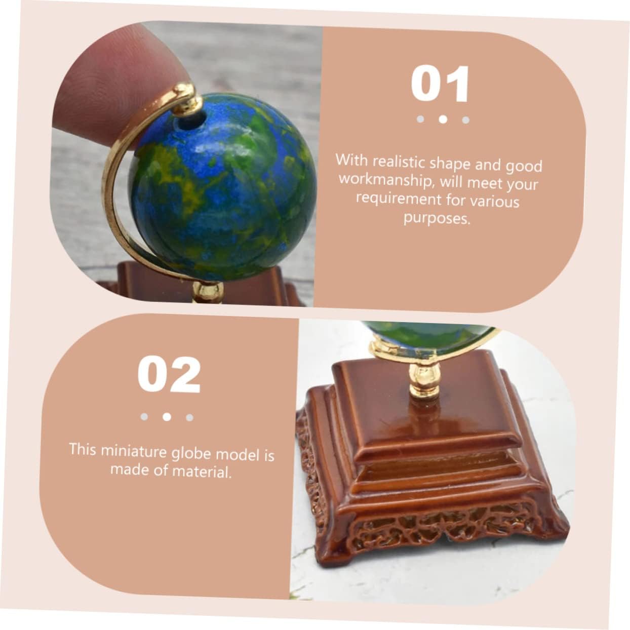 Decorazione del globo giocattolo: il mini globo può soddisfare le diverse esigenze di decorazione per il soggiorno, la sala da pranzo o la camera da letto per la mini casa. Oggetti di scena per la fotografia minihouse globo: è necessario per i mobili della mini casa nella camera da letto in miniatura o nella sala da pranzo della mini casa. Mini computer: il globo in miniatura è adatto per essere posizionato nella camera da letto, nel soggiorno o nella cucina della casa. Mappamondo minicasa per bambini: questo modello di mappamondo in miniatura è realizzato in materiale sicuro e di . Giocattolo per bambole: di dimensioni mini e leggero, il mini mappamondo non occuperà molto spazio per la tua casa.