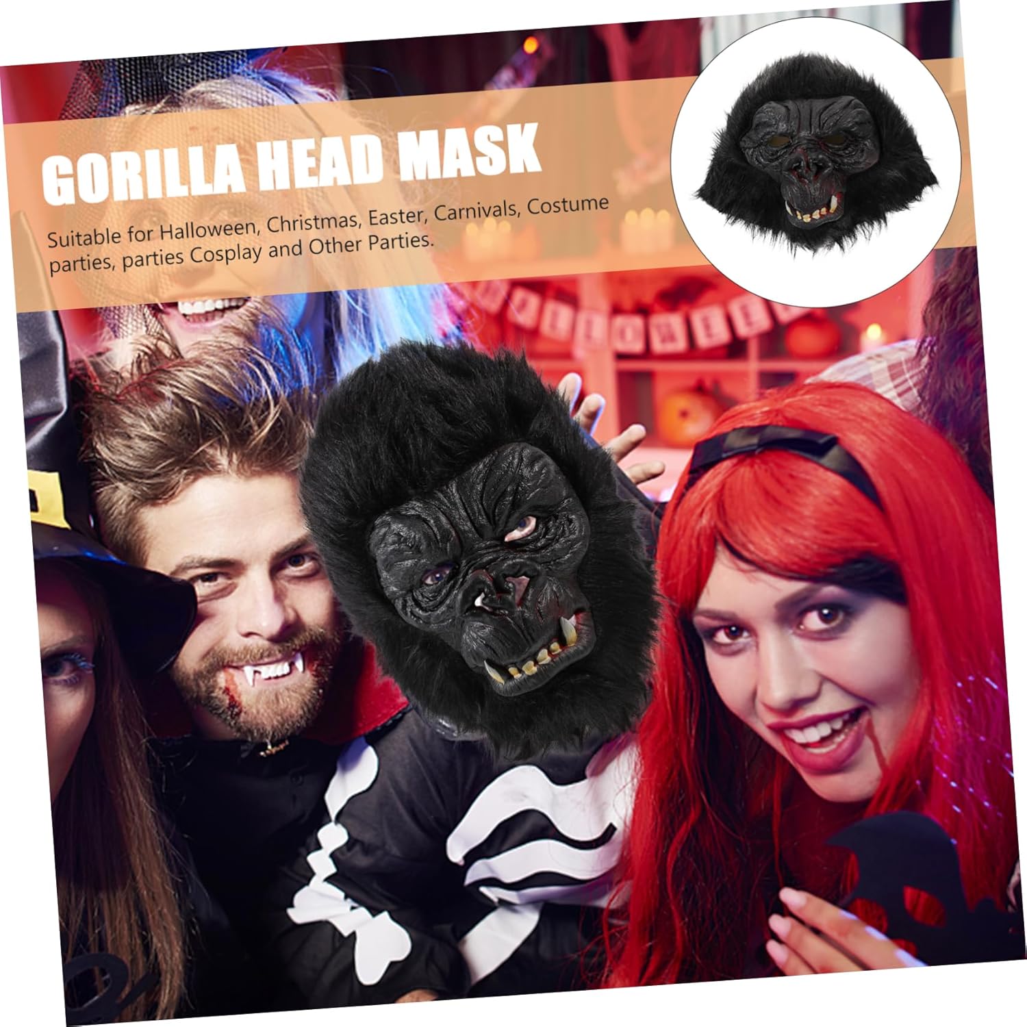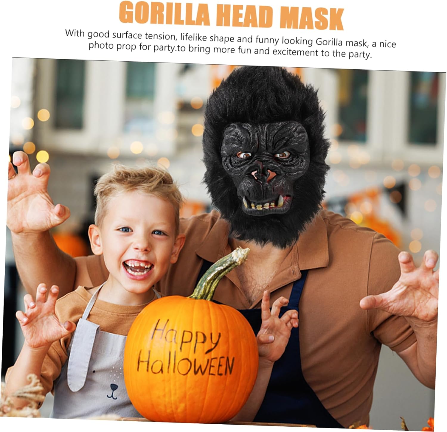 La confezione include 1 × Caratteristiche Gorilla - Colore: Nero Stile horror - Dimensioni: 22,00x21,00x21,00 cm/8,65x8,25x8,00 cm. -Materiale: e cosplay di peluche - Lo stile Gorilla si abbina perfettamente alla maggior parte dei temi di Halloween. non facile da danneggiare. adatto a diversi gruppi di persone Decorazione di Halloween. – La lavorazione delicata e la forma speciale rendono lo stile gorilla molto trendy. - Questo oggetto di scena per cosplay di gorilla aumenta l'atmosfera più felice per Halloween e carnevale. - Questo accessorio decorativo è adatto a molte occasioni come Halloween, feste cosplay e altri festival divertenti. - L'oggetto di scena è molto adatto per interpretare un ruolo nelle occasioni di Halloween e arricchire l'atmosfera festosa della testa del gorilla di Halloween. descrizione degli articoli per carnevale ben fatti, design dalla forma squisita, alla moda e, la decorazione è l'accessorio decorativo per la festa. Festa di Halloween, questa mascherata è realizzata in materiale, pratica e può essere utilizzata a lungo