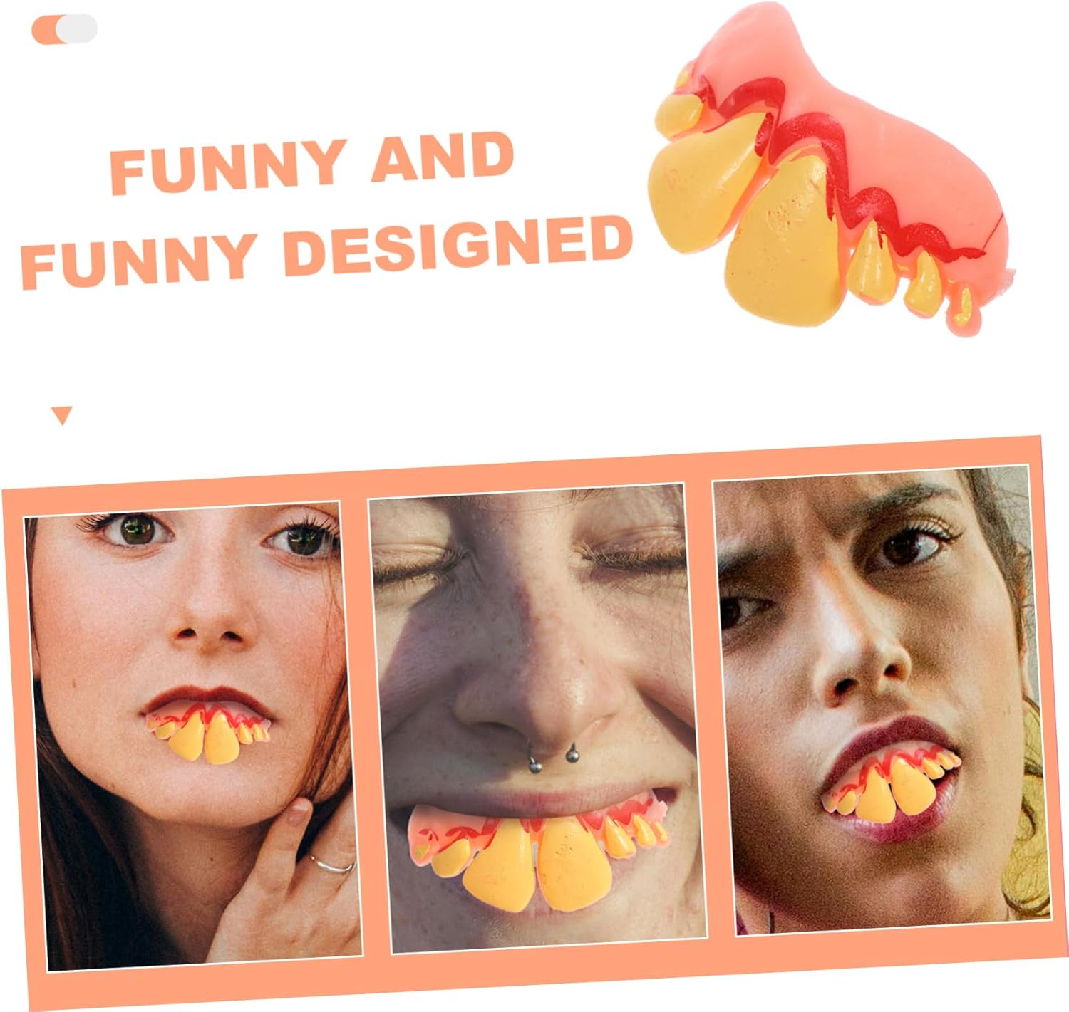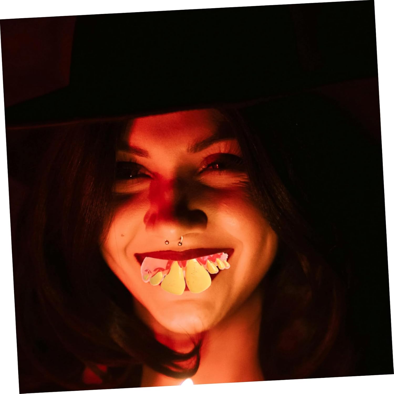 Vampiri dai denti brutti - Dentiera di Halloween: che tu ti stia preparando per una festa di carnevale di Halloween, un ballo in maschera o altre feste a tema, questo set di dentiera è un accessorio per completare il tuo look. Aggiungi facilmente un tocco di eccentricità ed eleganza al tuo outfit, facendoti risaltare alla festa. Oggetti di scena per scherzi - 🦷L'oggetto di simulazione dei denti può rendere il tuo costume cosplay più realistico, può anche essere un oggetto unico per scattare foto e lasciare un momento indimenticabile. personalizzato: per Halloween, feste in maschera, giochi di ruolo e altro ancora, aggiungendo divertimento al tuo . Denti da trucco: il supporto per denti di simulazione rende il tuo costume cosplay più realistico, il che può darti sensazioni diverse. Denti finti brutti: possono in diverse occasioni e secondo le tue esigenze creare un'atmosfera spaventosa di Halloween.