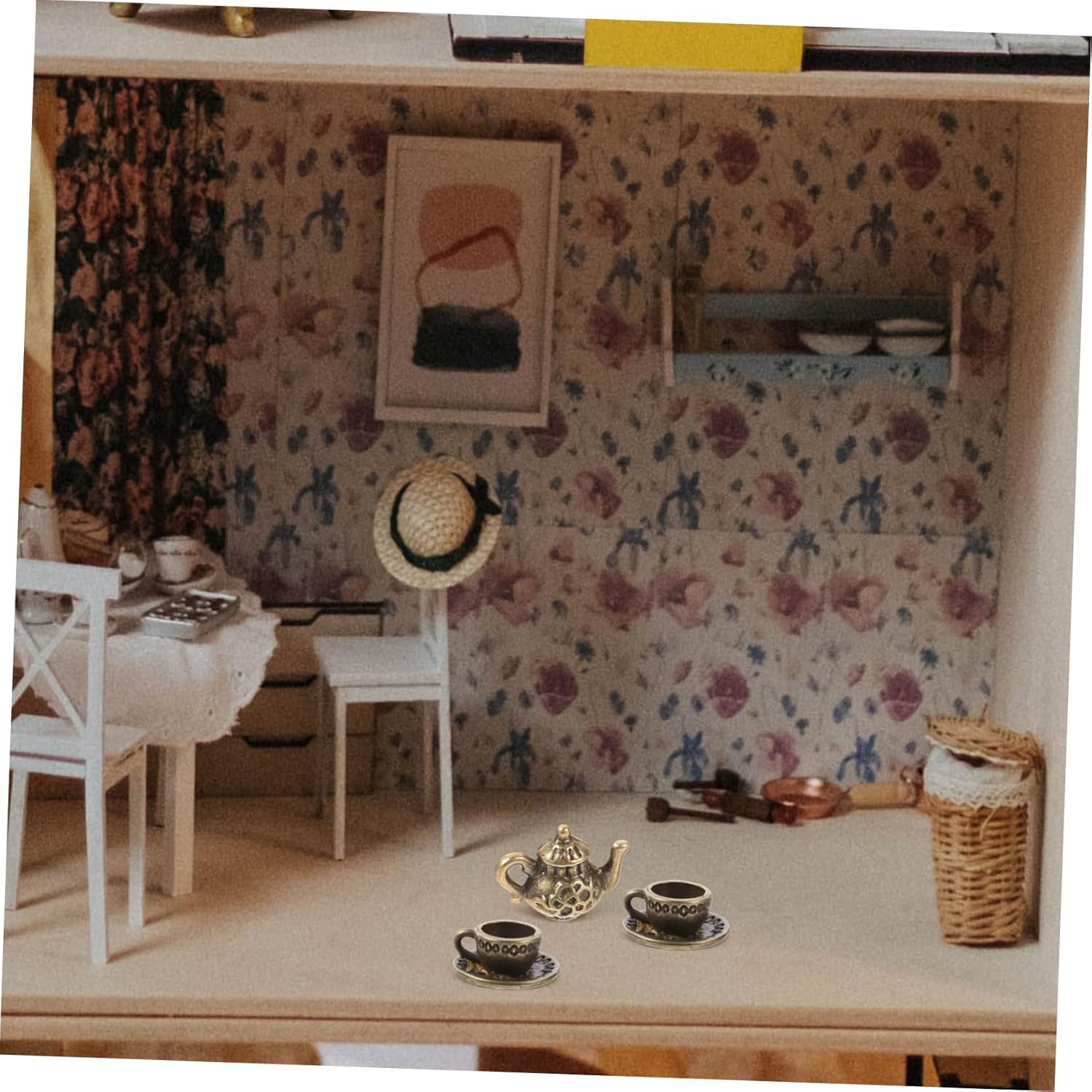 Accessori per il tè: presentano colori brillanti, offrono un vivido piacere visivo e aggiungono calore e colore alla tua casa da tè. Articoli in miniatura: progettati con uno stile squisito e vintage, questa tazza da tè e teiera in miniatura sono eleganti e belle. Utensili in miniatura: adatti a diverse scene domestiche, rendendo la tua casa più colorata con questo set da tè. Mini decorazione della casa: design meticoloso, attenzione ai dettagli: ogni dettaglio è meticolosamente progettato per rendere la tua casa più raffinata e perfetta. Tazze in miniatura: sicure e comode da usare, non facili da rompere o deformare, riutilizzabili e applicabili a lungo.