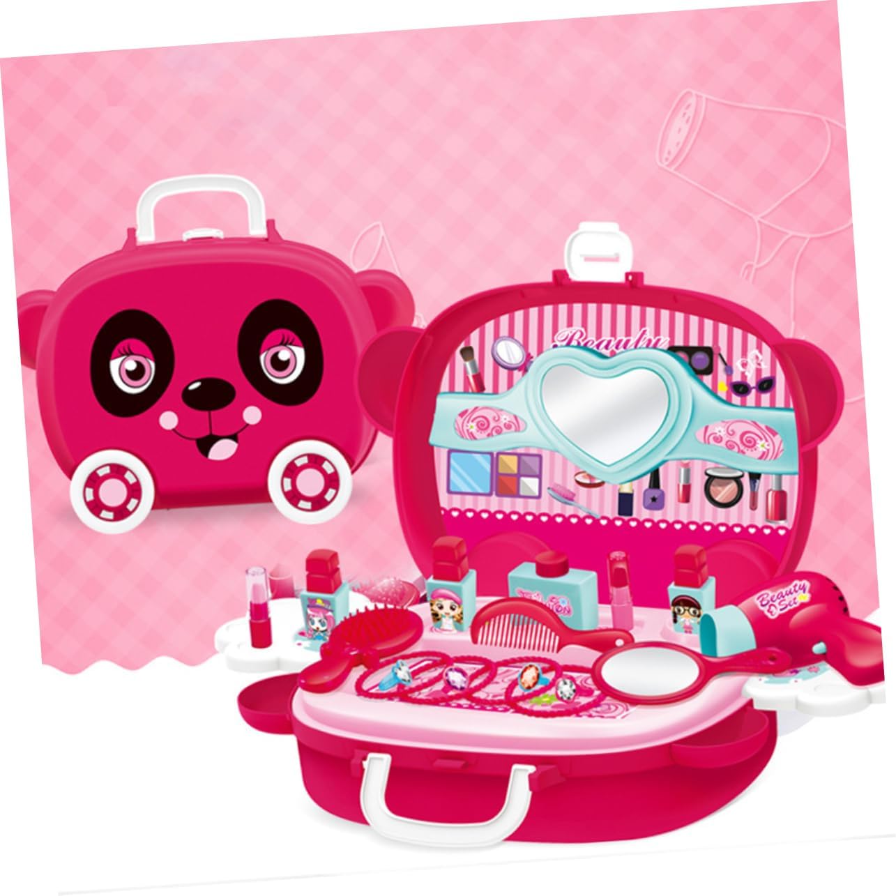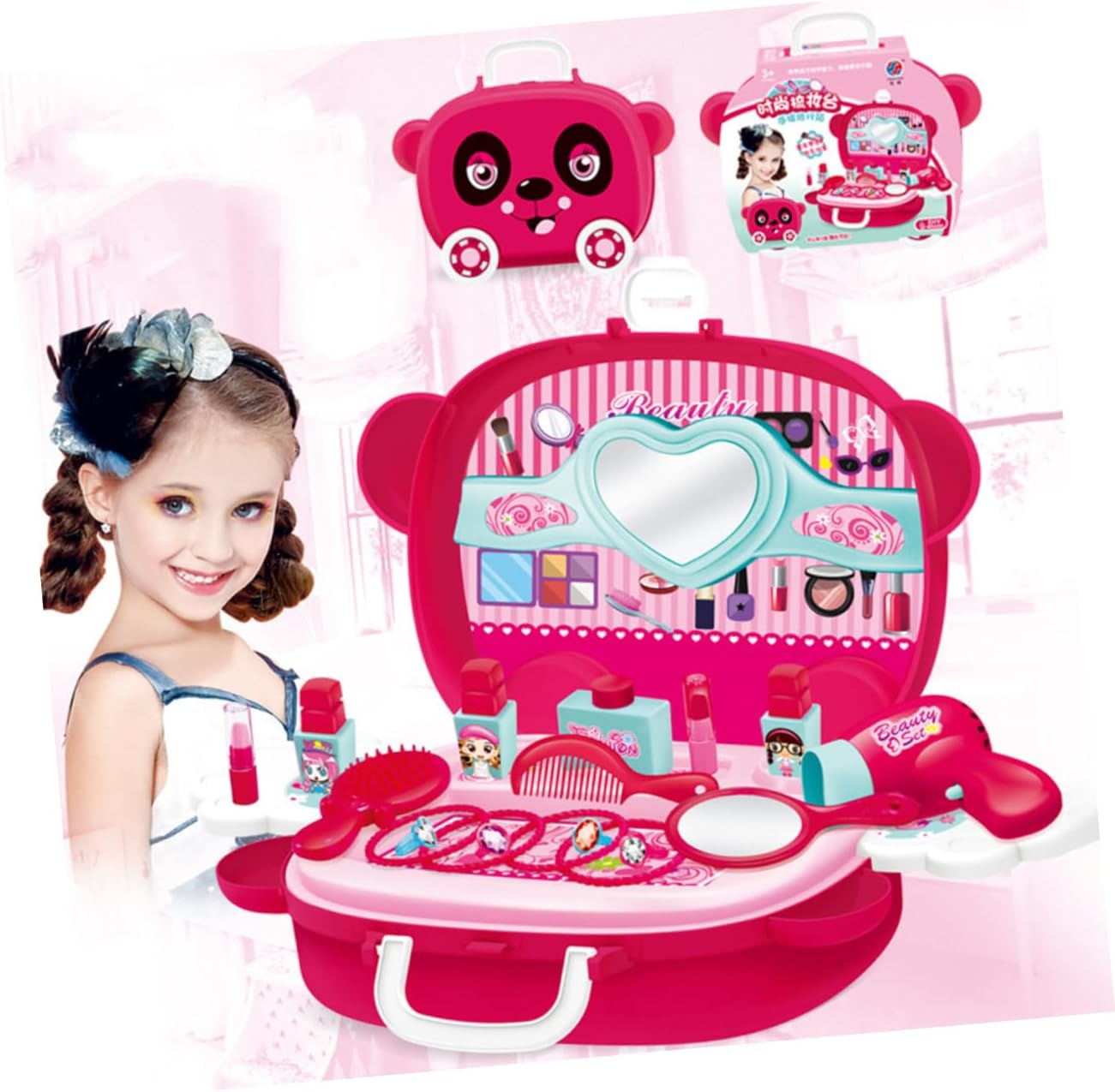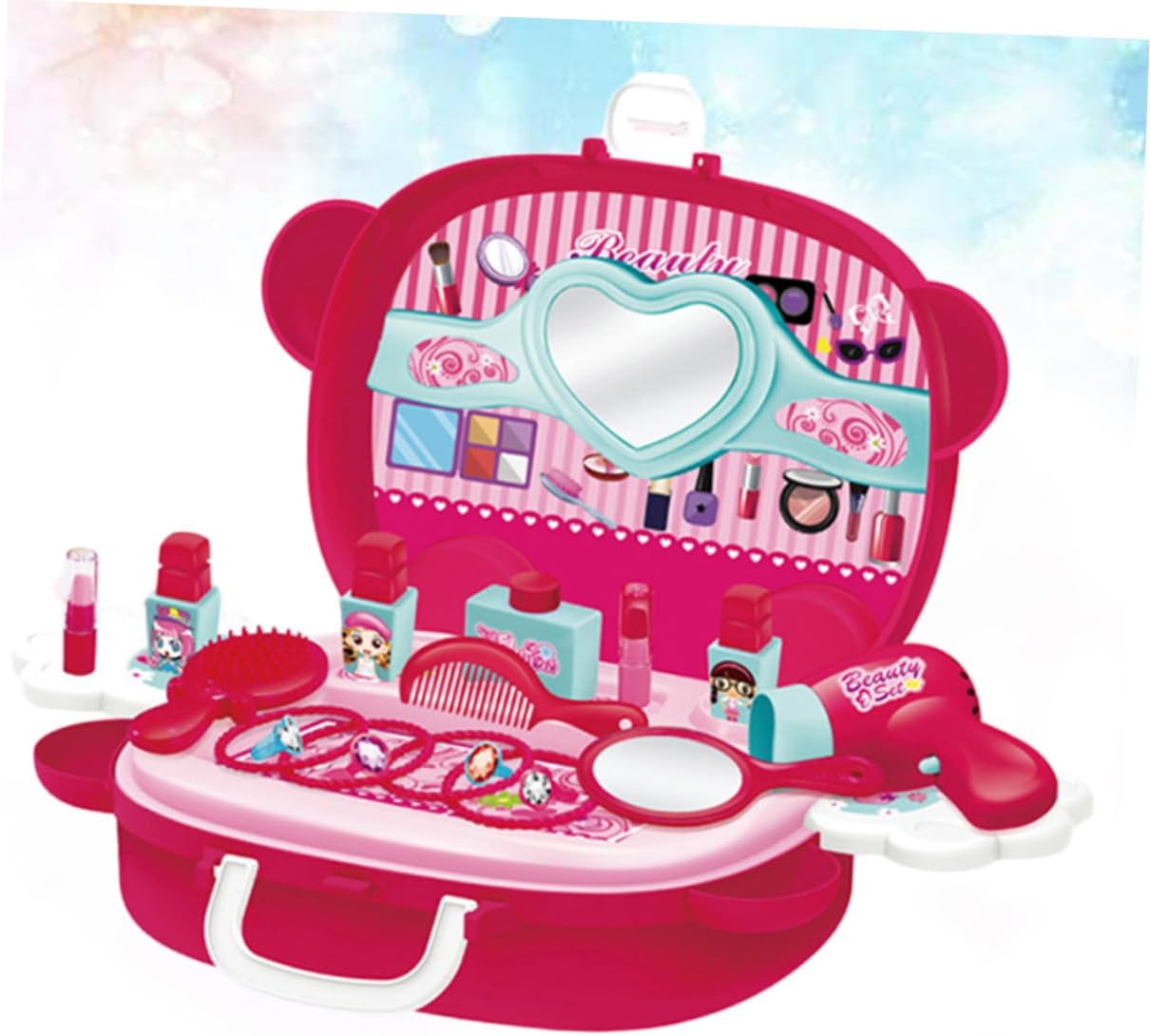 Giocattoli per bambini: puoi fare giochi di ruolo con i tuoi bambini, questo prodotto può accompagnare efficacemente i bambini e aumentare l'interazione genitore-figlio, valigia cosmetica di simulazione Giocattoli per bambini: il design unico della valigia favorisce le buone abitudini di conservazione dei bambini e il contenuto della valigia non è facile da perdere Giocattoli da principessa: la lavorazione è liscia e gli angoli arrotondati non fanno male alle , favorendo la capacità di operare del tuo bambino Giocattolo cosmetico di simulazione: questo prodotto può essere regalato ai tuoi amici e alle famiglie, saranno molto felici, giocattoli Giocattolo per il trucco di simulazione: realizzato in materiale, è un uso duraturo, puoi usarlo, giocattolo