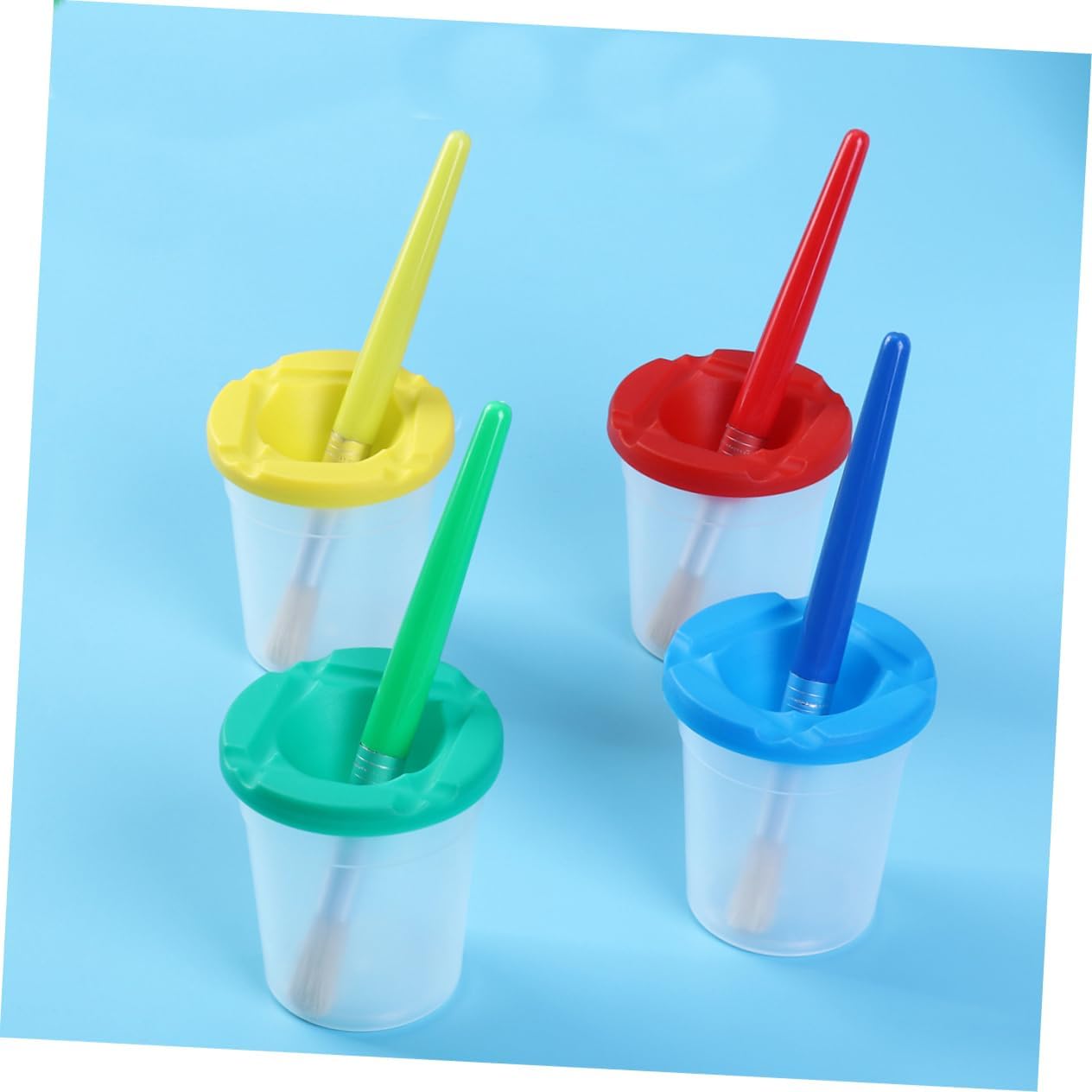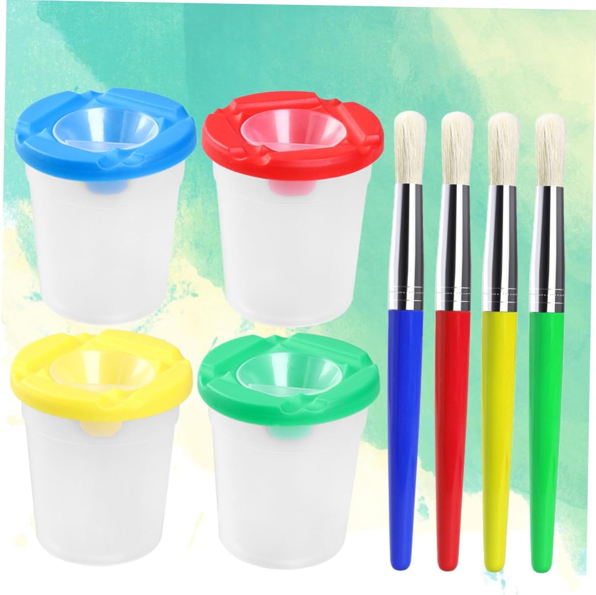 Accessori per la pittura: il set da 4 e 4 bicchieri da pittura offre ai tuoi bambini un controllo più preciso e versatile sulla loro pittura e li lascia molto impegnati con la pittura. Pennello da pittura per tazza pulisci-pennelli - testa con setole di alta qualità per creare bellissimi e soddisfare le diverse esigenze di pittura, tazza da pittura tazza da pittura per dipingere - adatta principalmente per disegnare immagini, adatta dai 3 anni in su, anche principianti che vogliono imparare a disegnare, tazza per lavare la pittura con detergente per pennelli con le dita - manico in plastica e tubo in metallo per una facile presa e controllo, tazza per pittura con pennelli Dimensioni: ca. 8 x 9 cm (L x A), tazza per dipingere, tazza per risciacquare il pennello