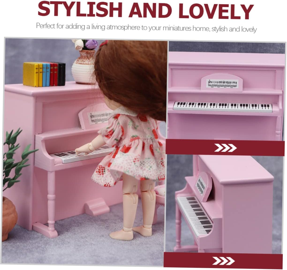Piccolo modello di sgabello per pianoforte: questi modelli in miniatura sono multiuso, puoi applicarli giocattolo per bambini, decorazioni per la casa, supporto fotografico, giocattolo di finzione, ecc. Pianoforte: realizzato in materiale di legno di qualità, sicuro e utilizzabile, delicato sulla pelle, adatto ai bambini, non facile da sbiadire, creparsi o rompersi, può mantenere un bell'aspetto per un lungo periodo. Casa delle bambole in miniatura: queste divertenti e interessanti decorazioni in miniatura sono la scelta regalo perfetta per i tuoi bambini, amici o familiari. Modello di pianoforte piccolo e robusto per un uso duraturo. la pregevole fattura ne garantisce praticità e durata. Modello di micropiano: un regalo perfetto per i bambini per il compleanno, natale, capodanno e qualsiasi occasione speciale che richieda un dolce regalo.