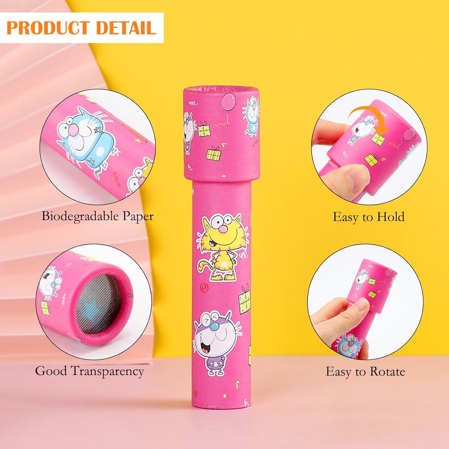 Materiale di alta qualità: questi classici giocattoli caleidoscopici sono realizzati principalmente in carta kraft di alta qualità, sicuri e atossici, leggeri ma resistenti, resistono al gioco quotidiano, non sbiadiscono con un uso prolungato, squisita fattura, superficie liscia senza sbavature, piacevole al tatto, la lente è realizzata in plastica, non facile da danneggiare, buona trasmissione della luce, visione chiara, colori vivaci. Vari modelli: il nostro caleidoscopio 12 colori casuali, una varietà di motivi, colori brillanti, osservare attraverso l'oculare e ruotare il cilindro per creare un favoloso modello di colore unico. Scopri di più sulla percezione di in diverse forme e colori, perfetto per ragazzi e ragazze. Giocattolo classico retrò: il giocattolo caleidoscopio è un classico giocattolo del 18 ° secolo; più di 200 anni dopo è ancora un giocattolo popolare pieno di ricordi d'infanzia. Basta girare la fine per godersi i modelli magici e mutevoli, vivere una festa visiva fluida e scoprire ancora più divertente. I caleidoscopi non passano mai di moda e sono un giocattolo divertente per tutte le età. Istruzione e divertimento: il giocattolo educativo del caleidoscopio contiene un aspetto colorato e carino; il nostro caleidoscopio può comprendere la bellezza della simmetria con i propri occhi, basta girare la corsa per godere di modelli di colore illimitati. Ogni round crea un mosaico magico, intricato e simmetrico, in cui il gioco di luci e ombre ti sorprenderà. Splendido regalo: questo caleidoscopio colorato è un regalo divertente per la famiglia o gli amici, adatto per compleanni, incentivi di classe, premi, regali per feste, Natale, festività; inoltre è un regalo ideale come regalo per la scuola per compagni di classe o amici.
