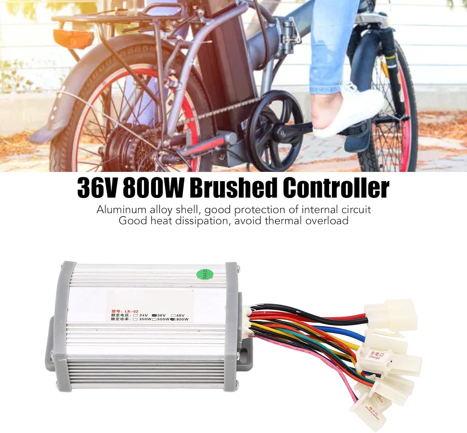 36 V 800 W: la tensione nominale del controller è 36 V e la potenza nominale è 800 W, utilizzata per motori a spazzole con prestazioni stabili e affidabili. Protezione da sovracorrente: il controller del motore della spazzola dispone di funzioni di protezione come protezione da sottotensione, protezione da sovracorrente e protezione da stallo, che garantiscono l'uso e la sicurezza della bici elettrica. Migliora l'affidabilità: il microcontrollore è il chip di controllo principale. La scatola di controllo del motore BicycleBrush controlla e protegge il motore elettrico e la batteria della bicicletta elettrica, migliorandone l'affidabilità e la durata. Ampiamente utilizzato: il controller è adatto per biciclette elettriche, tricicli elettrici e motocicli elettrici con un'ampia gamma di applicazioni. Involucro in lega di alluminio: il controller adotta un involucro in lega di alluminio con buona protezione del circuito interno e buona dissipazione del calore per evitare sovraccarico termico.